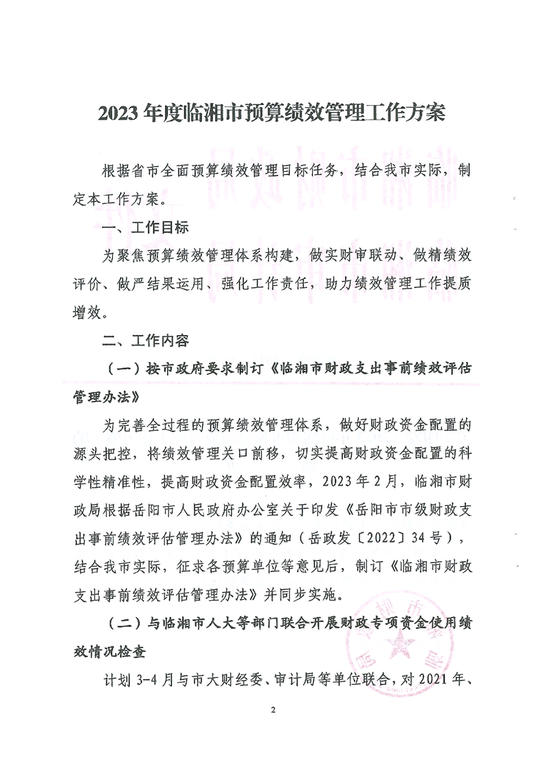 关于印发《2023 年度临湘市预算绩效管理工作方案》的通知