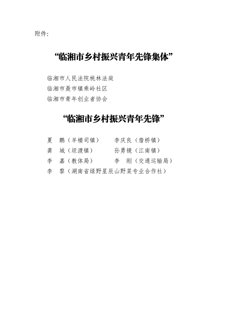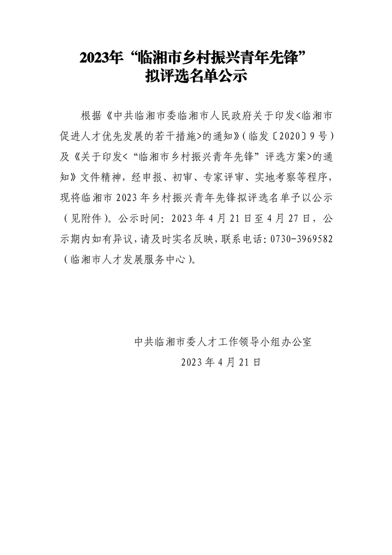 2023年"临湘市乡村振兴青年先锋"拟评选名单公示