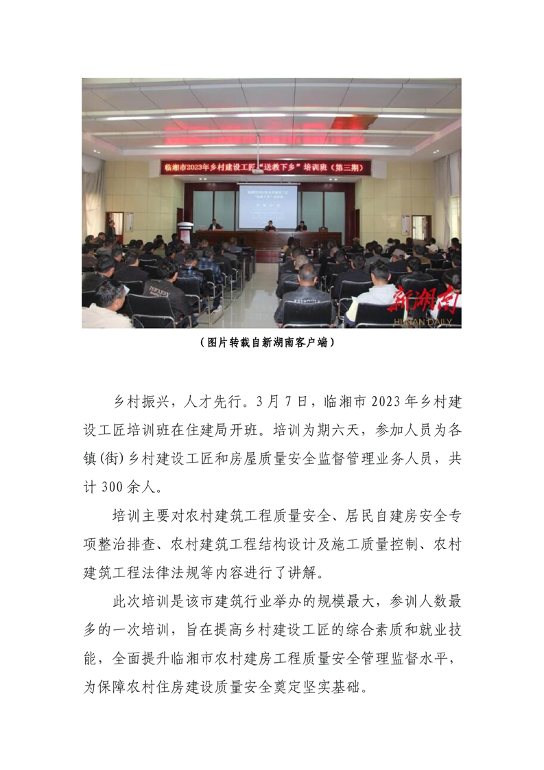 临湘市2023年乡村建设工匠培训班开班