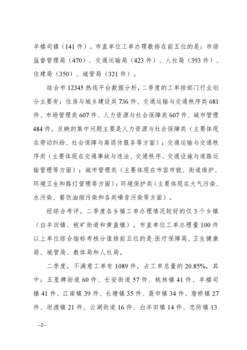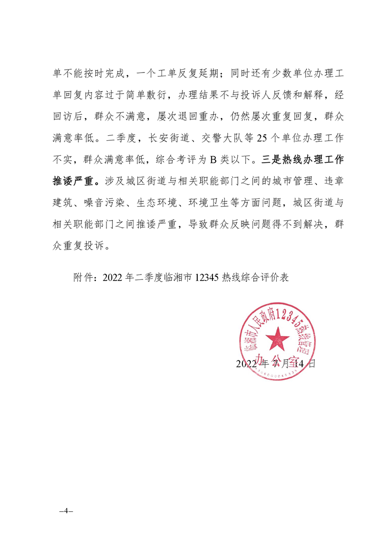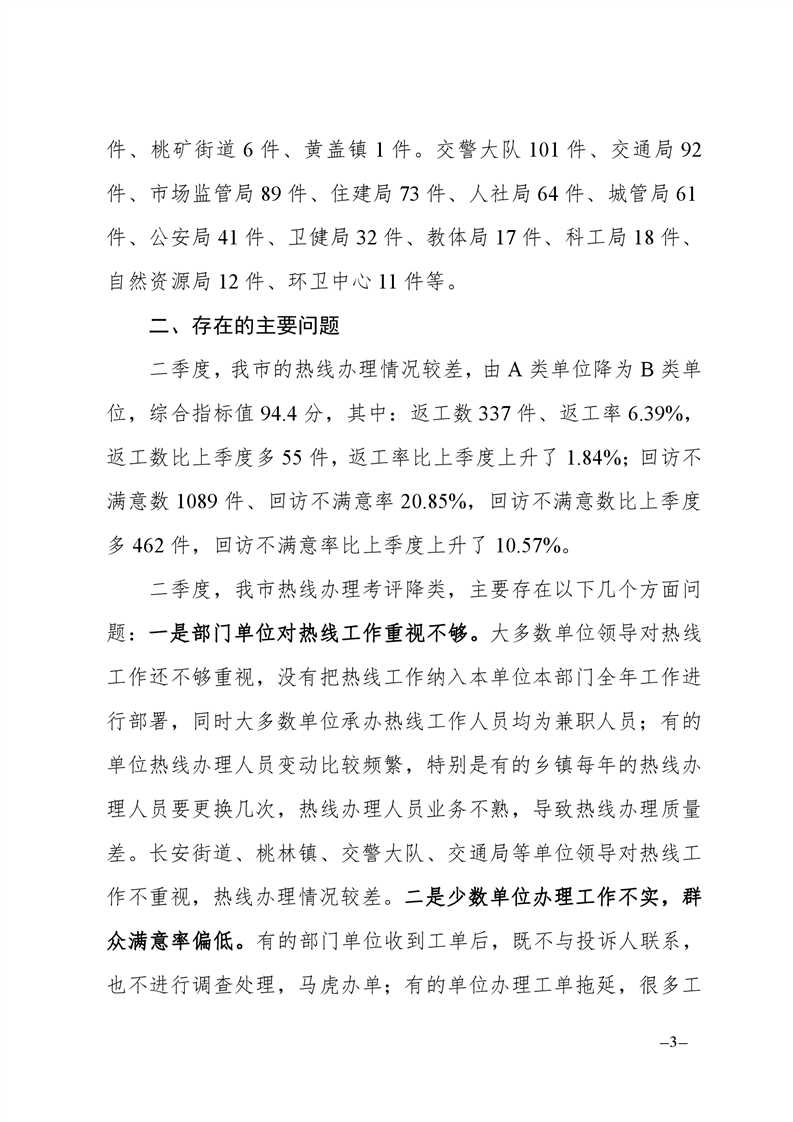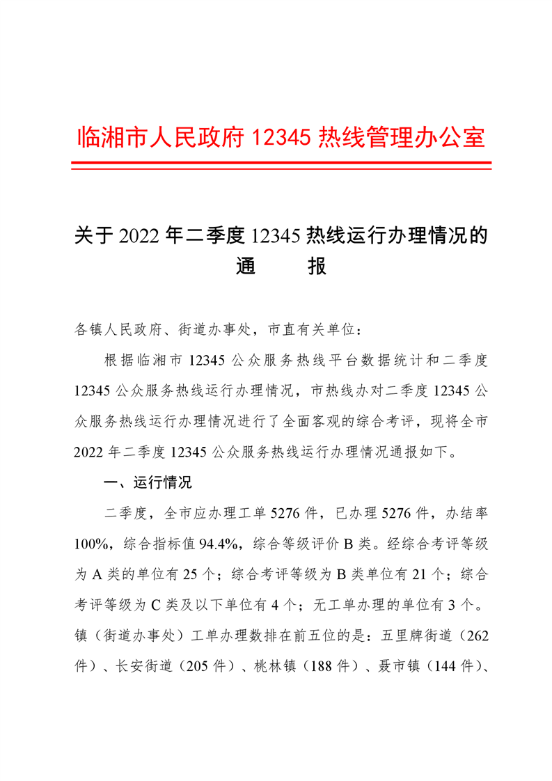 关于2022年二季度12345公众服务热线运行办理情况的通报