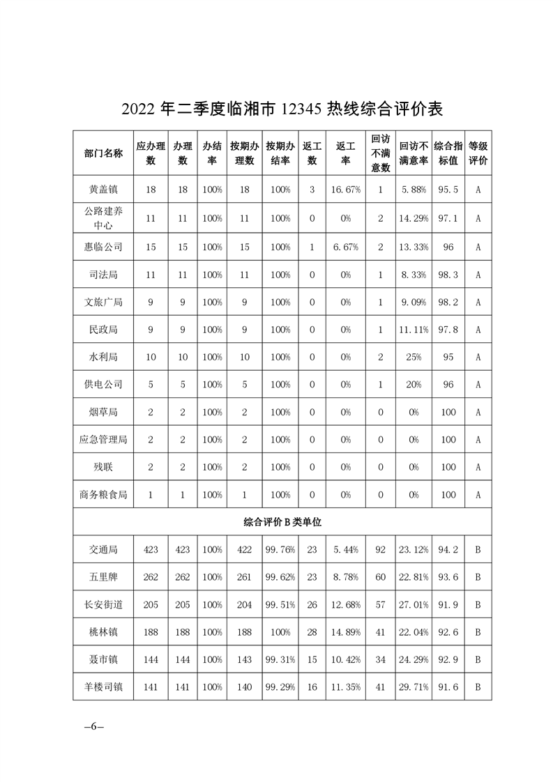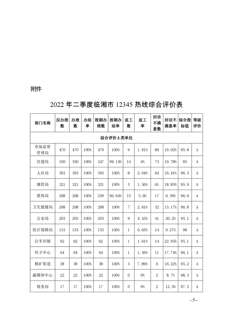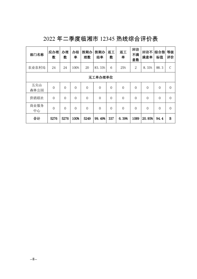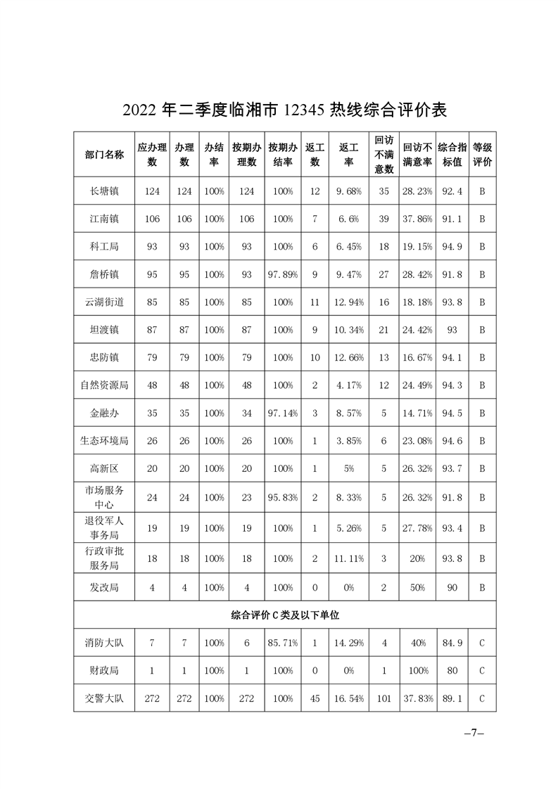 关于2022年二季度12345公众服务热线运行办理情况的通报