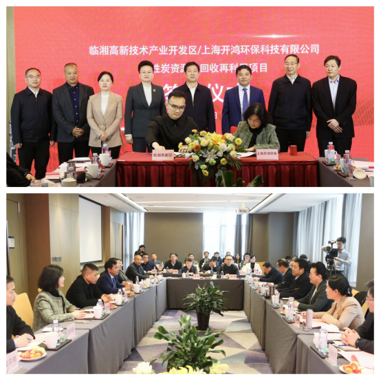 3月30日上午,上海开鸿环保科技有限公司与临湘高新区在上海市浦东新区举行活性炭资源化再利用项目签约仪式。岳阳市委副书记、市长李挚,岳阳市人民政府副市长、党组成员魏淑萍,岳阳市人民政府秘书长、党组成员孙志诚,临湘市委副书记、市人民政府市长刘琦,临湘市委常委、市人民政府副市长蔺佳等领导出席签约仪式。
