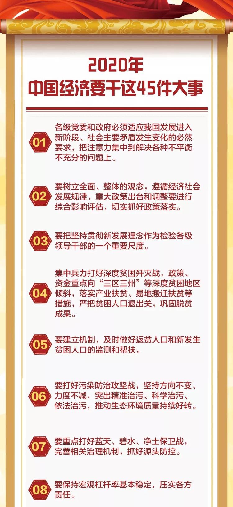 中央明确2020年中国经济要干这45件大事