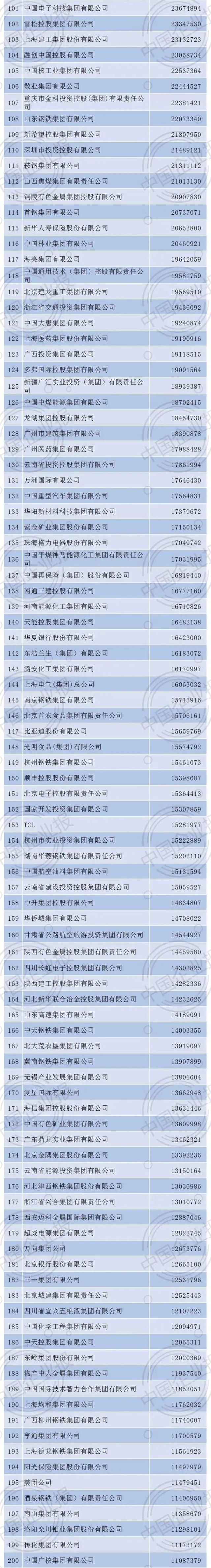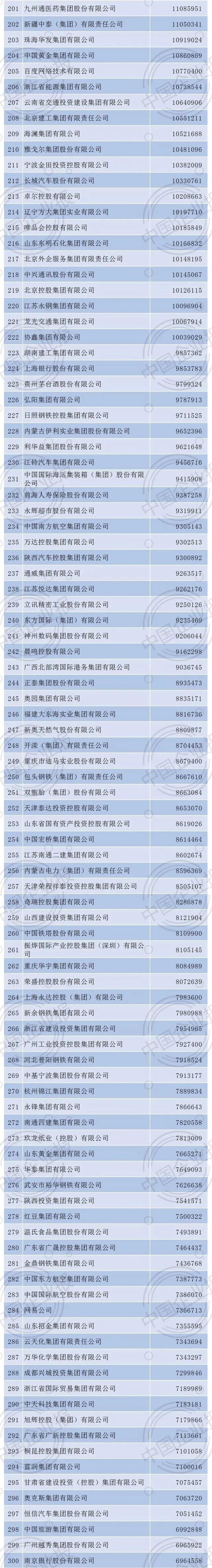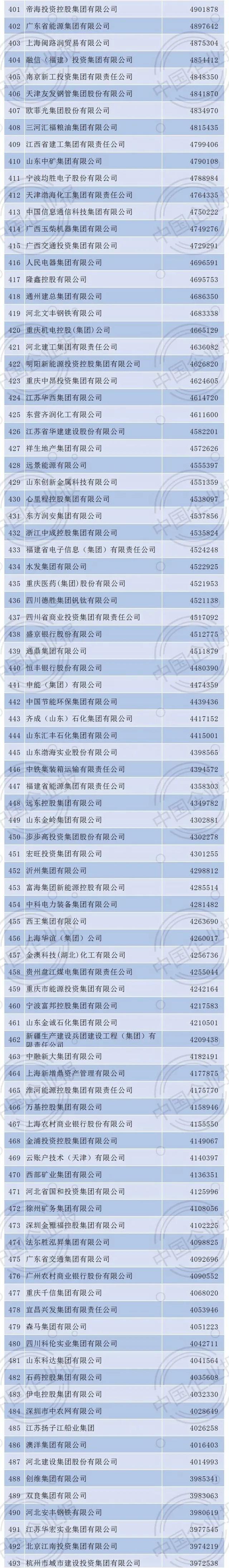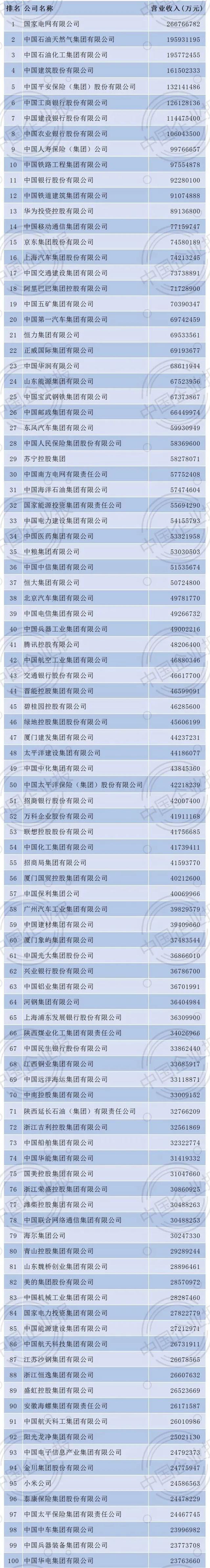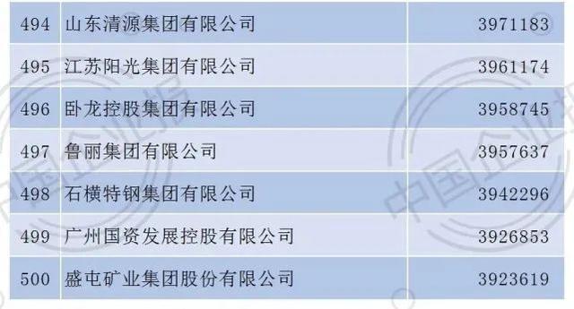 2021年中国企业500强排行榜