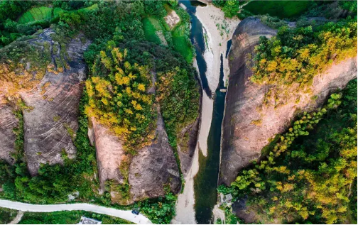 如果你用一种色彩,作为中华民族色彩的话,你会用哪种?你一定想到中国红。中国的山水里,有一种地貌,如此契合这种色彩,它叫“丹霞地貌”。大石坳仙境这片上天恩赐的自然杰作,穿越远古洪荒而来,像一条神龙盘卧在东经13°29ʹ50"、北纬29°23ʹ12"的临湘市忠防镇响山村,宛如一颗遗落山间的明珠,静待世人探寻。
