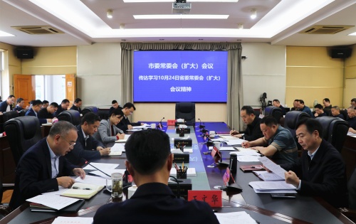 10月30日上午,市委常委会召开(扩大)会议,传达学习习近平总书记近期重要讲话和重要指示,上级重要会议、文件精神,研究我市贯彻落实意见。市委书记王文华主持,刘琦、彭海云等市委常委会组成人员参加会议。