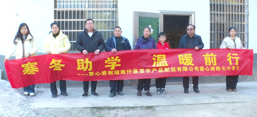 1月15日,市第七完全小学携手爱心企业湖南仟果菜农产品配送有限公司开展“寒冬助学、温暖前行”爱心助学活动。
