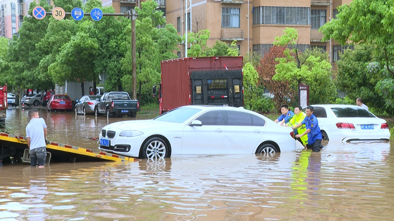 在麦坡路和城中北路交汇处,暴雨导致该路段出现短时积水,过往车辆通行受阻,城管队员与市政工作人员合力救援被困车辆,加大排水力度,该路段已于昨天上午恢复正常通行。
