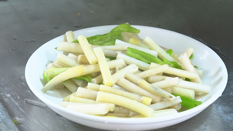 立夏过后,暑气渐浓,正是藕尖鲜嫩上市之时。在江南镇,藕尖凭借独特口感成为当地农家餐馆火爆的时令佳肴。这家餐馆推出的清炒藕尖,味道清甜爽口,保留了藕尖最本真的口感,广受食客的青睐,平均每天要卖出30多份。