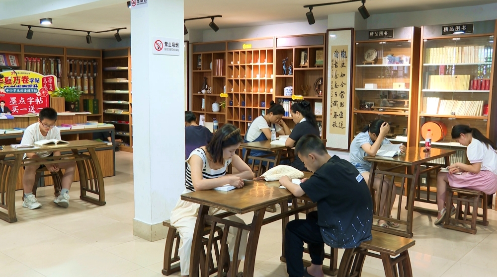 走进市新华书店,凉爽的环境与满架图书让人倍感惬意。书架旁、阅读区坐满了沉浸书海的读者,不少学生和市民在此度过悠闲时光。
