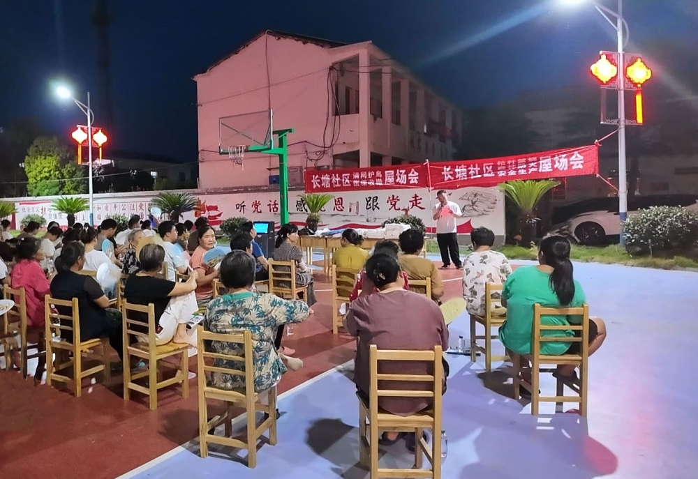 9月15日晚,长塘镇在各村(社区)召开屋场会,把安全知识及相关政策送到群众“家门口”。