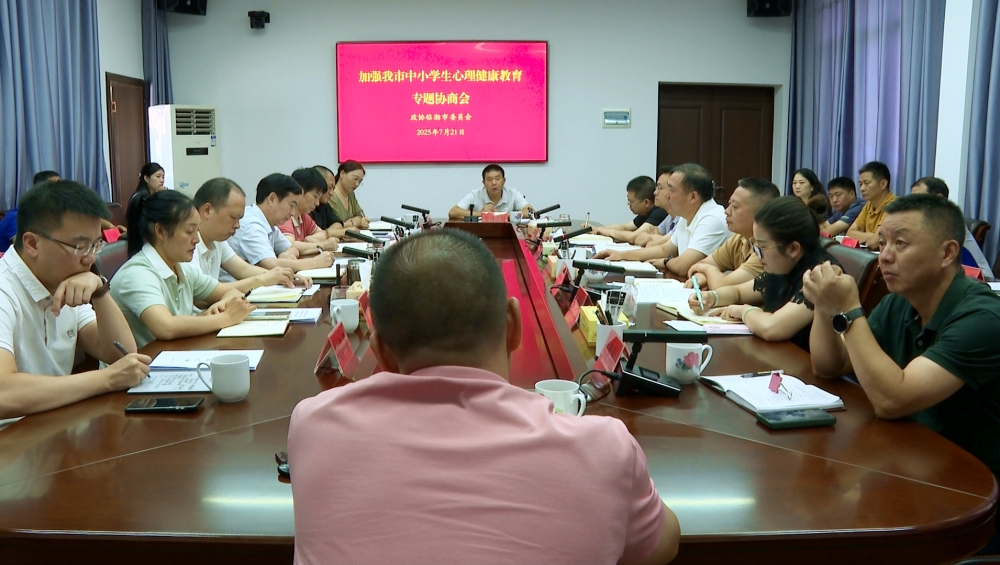 7月21日上午,市政协主席彭海云主持召开“加强中小学生心理健康教育”专题协商会议。副市长黎建平,市政协副主席马榕,市政协秘书长梅红军等出席会议。
