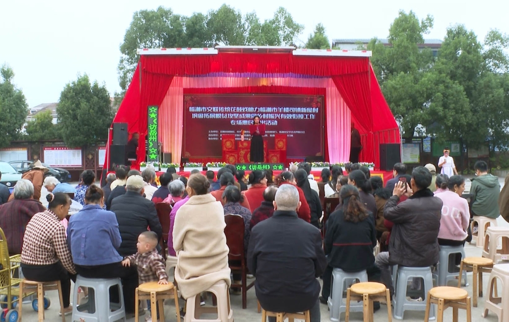 11月7日,岳阳市财政局与我市市委编办、市文联、市农村商业银行在羊楼司镇新屋村联合开展传统花鼓戏专场惠民演出活动。
