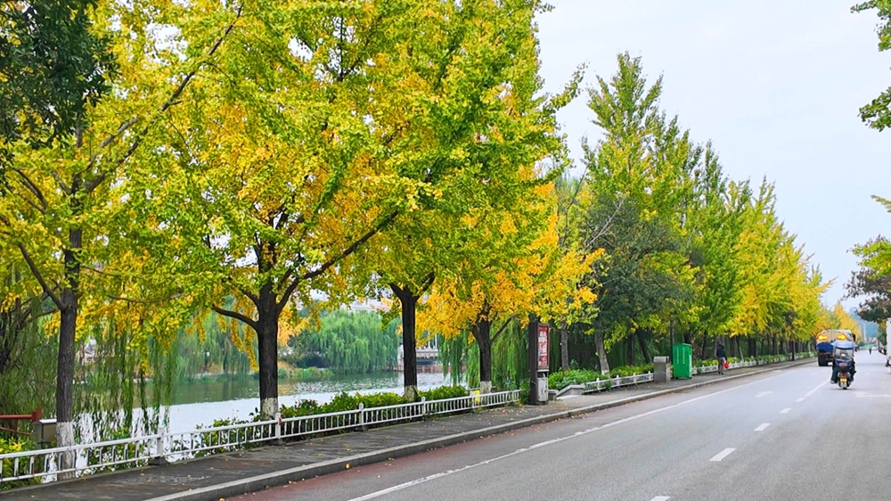 近日,长安河两岸的银杏树迎来了一年中最璀璨的时节。成片的银杏叶由绿转黄,化作漫天金黄,将河岸装点成一条流动的金色绸带,吸引了不少市民前来观赏打卡。
