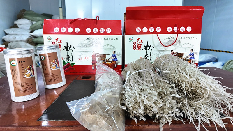 12月2日,记者在托坝社区红薯加工厂看到,工人们正熟练的操作设备,将一个个饱满的红薯经过清洗、粉碎、过滤、沉淀等工序后,提取出细腻的红薯淀粉,再统一加工成晶莹剔透的粉丝。制成的红薯粉丝口感爽滑、劲道且富有弹性,在市场上十分畅销,深受消费者青睐。