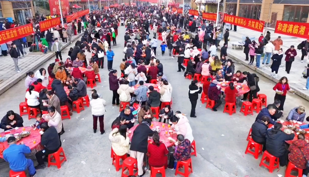 活动现场菜肴丰盛、笑语满堂。桃林丰锅、牛骨头炖萝卜、麻辣鱼等一道道热气腾腾的家常美味陆续上桌,香气四溢。业主们携家人、邻里围坐一堂,品尝可口饭菜,欣赏精彩演出,在融洽的氛围中拉近彼此距离,共同感受小区大家庭的温暖与情谊。