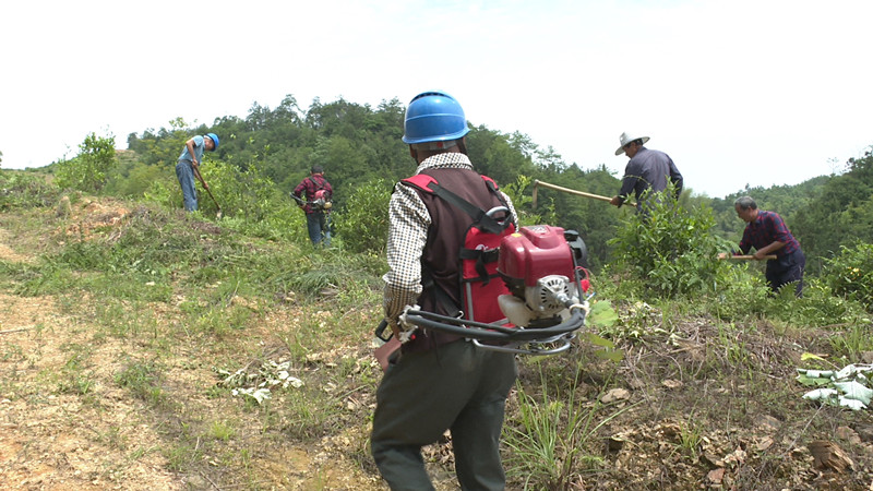 桃林镇横铺村村民葛刚强:现在我们每天都在茶园进行茶(树)除草抚育,大概要做7、8个小时,一天下来搞得200块钱,屋里老(人)、小(孩)都照顾好了。