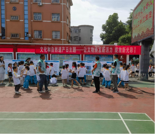 为了更好地宣传贯彻新修订的文物保护法,全面展示文化遗产保护传承利用新进展新成效,让文物在新时代焕发新活力、绽放新光彩,增强全社会文物保护意识,营造保护文物的浓厚社会氛围。6月13日,在“文化和自然遗产日”即将来临之际,临湘市博物馆组织多名文旅服务志愿者,在临湘市实验学校举办了以“让文物焕发新活力、绽放新光彩”为主题的“文化和自然遗产日”展览进校园文旅志愿服务活动,受益师生达2500多人。