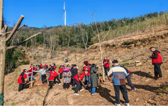 山间微风轻拂,红旗猎猎作响。大家一边植树,一边交流生态保护心得,畅谈绿色发展愿景,现场洋溢着团结协作、奋发向上的浓厚氛围。经过一上午的辛勤劳作,数千株新苗扎根沃土,为临湘生态屏障筑牢了新的绿色根基,也为春日山林勾勒出充满希望的生机轮廓。