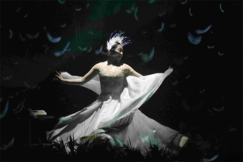 在“老渔村博物馆”,蓑衣、渔网等老物件静静陈列,配合360度环幕投影技术,当日光晨雾在数字技术营造的村落洒下金辉,白鹳在稻田上空翱翔,观众仿佛穿越时空,亲历渔村变迁。科技与艺术的完美结合,让生态文明故事变得可感可触。