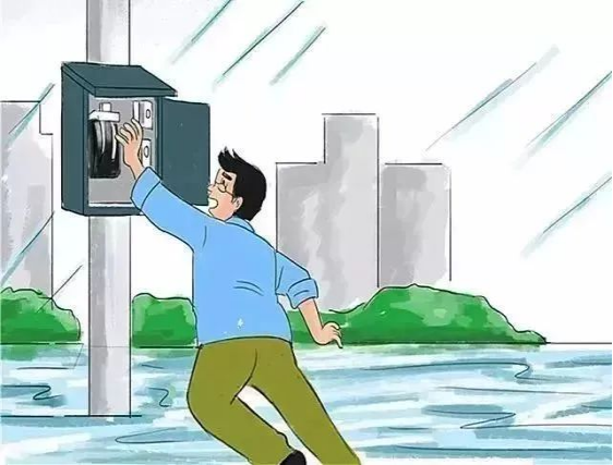 注意街上电力设施,如有电线滑落,即刻远离并马上报告电力部门。