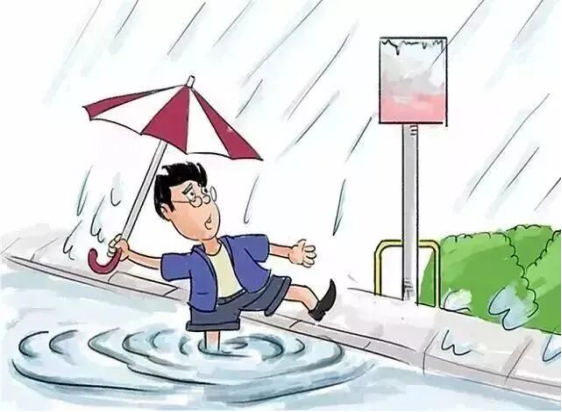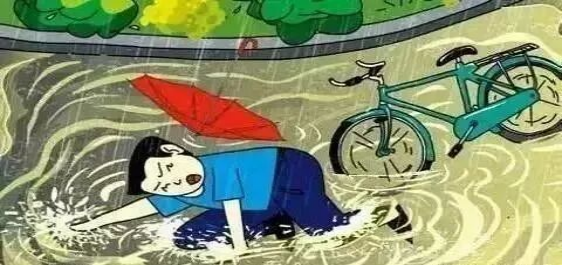 ●水中行,避井坑。出行遇到暴雨引起大面积积水,特别是儿童、妇女、老人要注意观察四周有关警示标志,注意路面,防止跌入窨井、地坑、沟渠等之中。