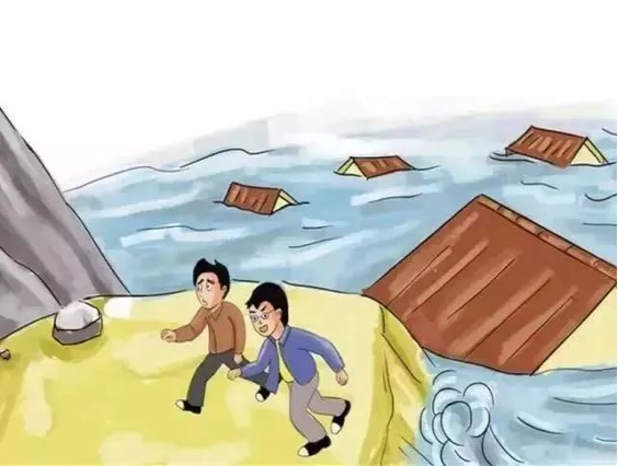 8、如已被卷入洪水中,一定要尽可能抓住固定的或能漂浮的东西,寻找机会逃生。