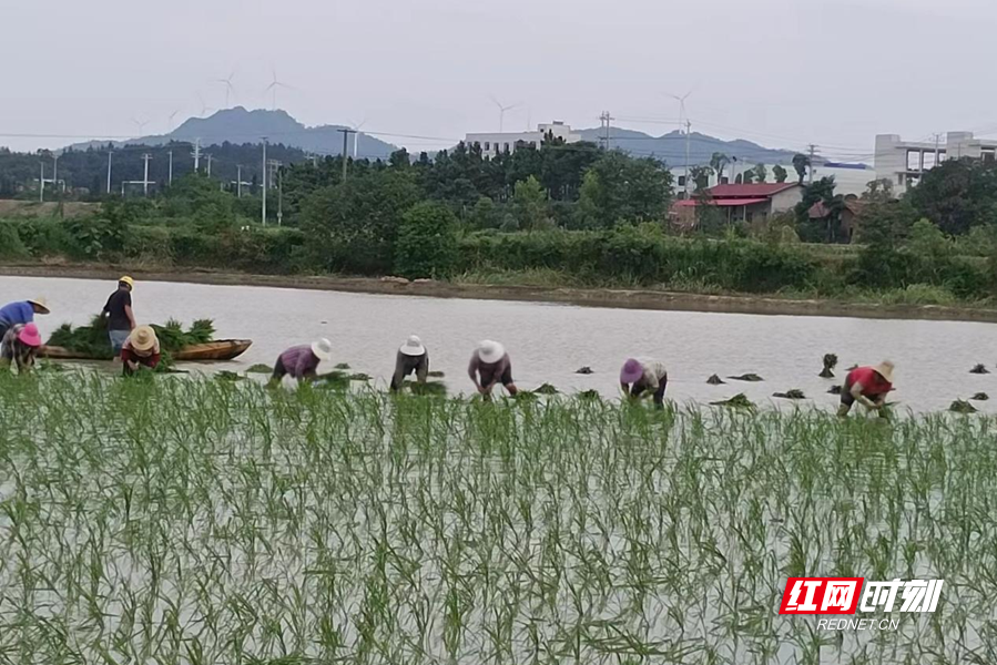 7月8日,洋溪村党总支书记刘亚军正组织农户们有条不紊地栽种晚稻。此次洪涝灾害中洋溪村稻田过水面积3000余亩、绝收900余亩,村支两委在做好防汛值守的同时,加大抢险力度,坚持能保一亩算一亩,抢一粒算一粒。上下团湖、杨桥渔场、季会组共种植水稻1100多亩,多处出现堤坝塌方,水漫堤坝险情,村支两委组织机械和劳力与时间赛跑,修复塌方200米,抢筑子堤近2000米,杨桥渔场与季会组500余亩水稻以安全渡过汛期,200余亩正补种晚稻。