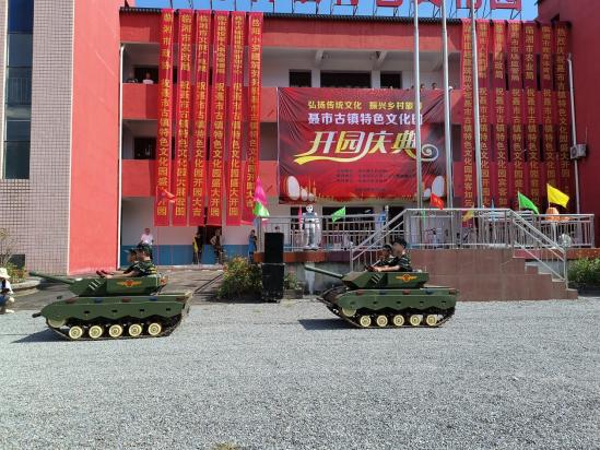 仪式还组织了茶马古道文化展示节目以及体验式坦克行进表演,展现了聂市作为南方茶马古道起点之一的历史文化底蕴以及文化园开展青少年研学课程的独特资源优势,进一步阐释了园区传承和弘扬传统文化、茶马文化、红色文化、军事文化的产品定位。