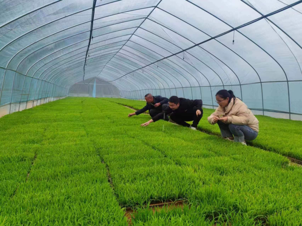 清明过后,天气逐步回暖,春日气息越发浓郁。晴空万里下、燕鸣莺啼间,白羊田镇八百村集中育秧大棚内的秧盘整齐有序,秧苗株株挺立、绿意盎然,一派生机勃勃的景象。