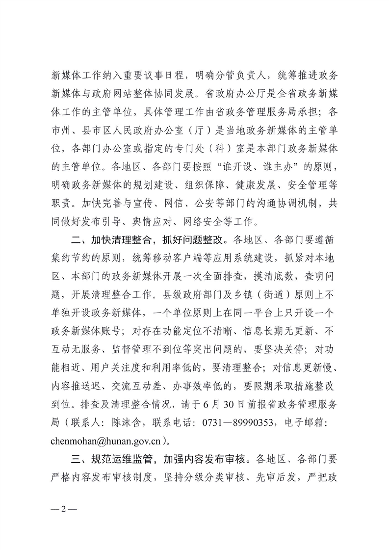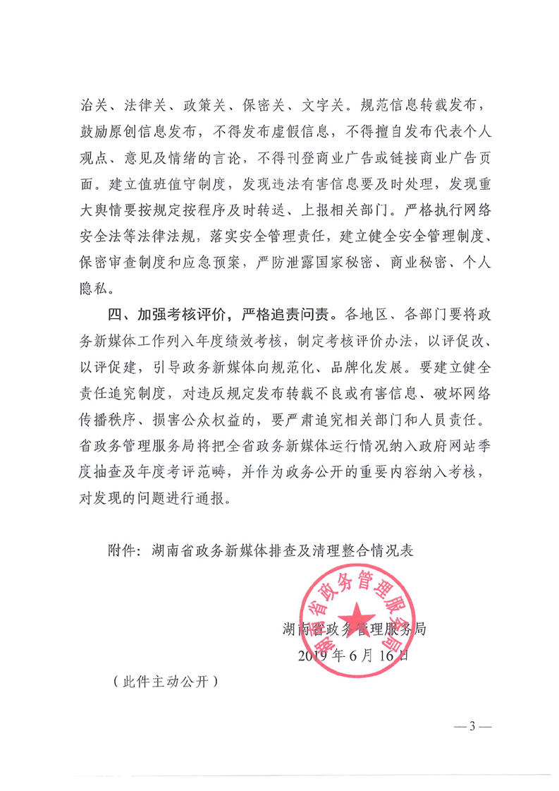 湘政务发〔2019〕1号-关于加强和规范全省政务新媒体建设管理应用有关工作的通知