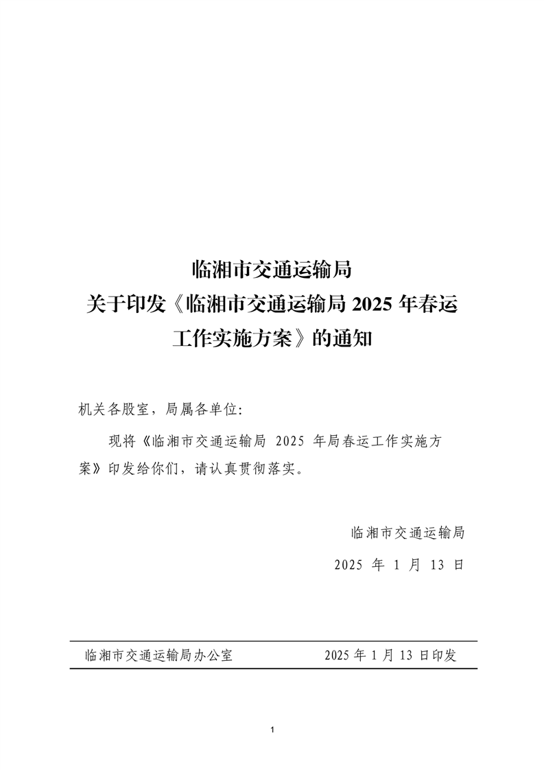 关于印发《2025年临湘市交通运输局春运工作实施方案》的通知