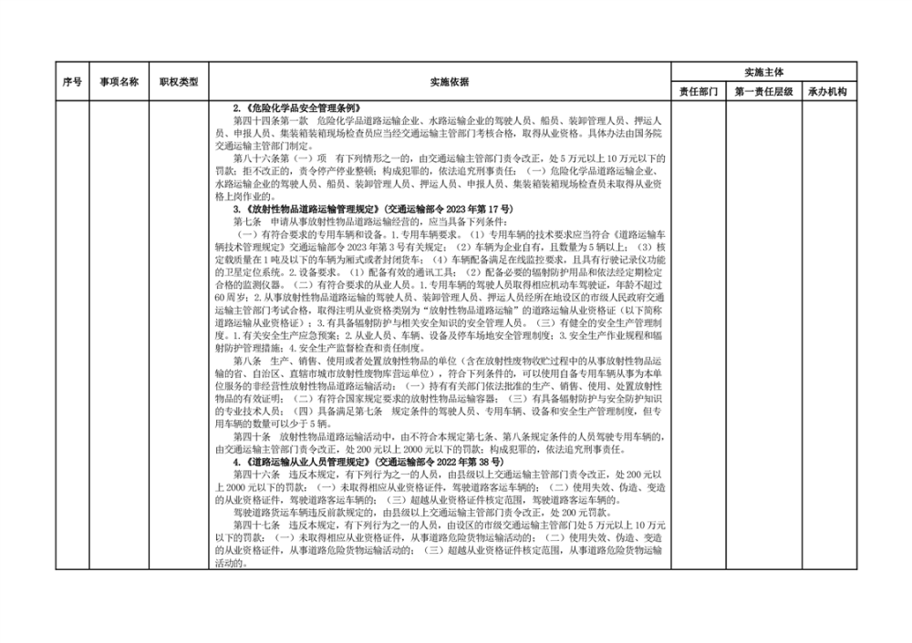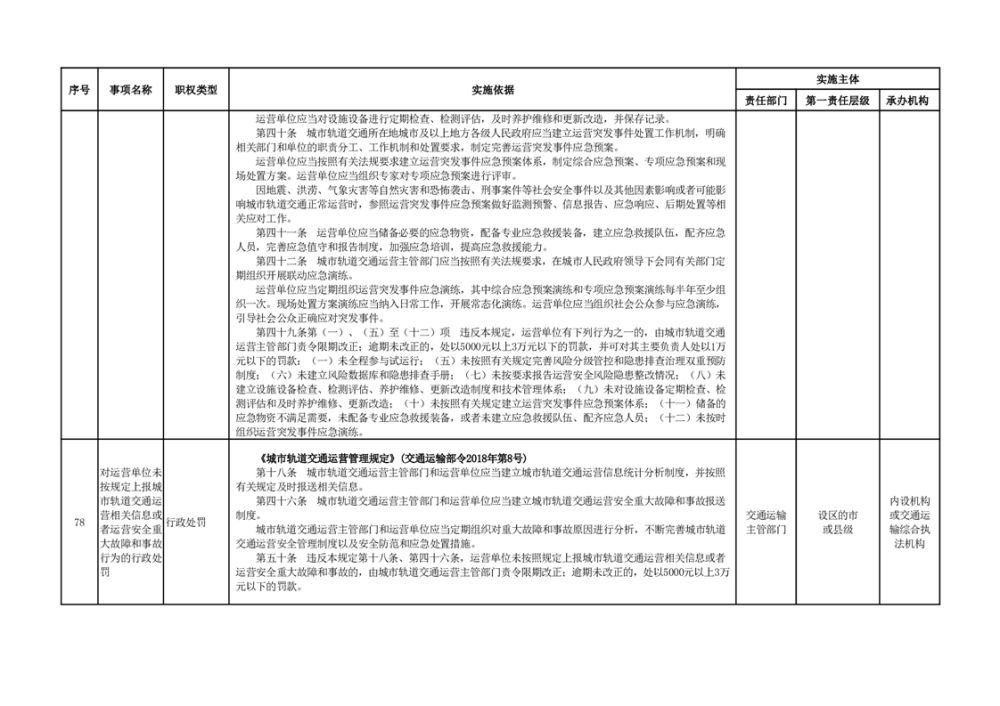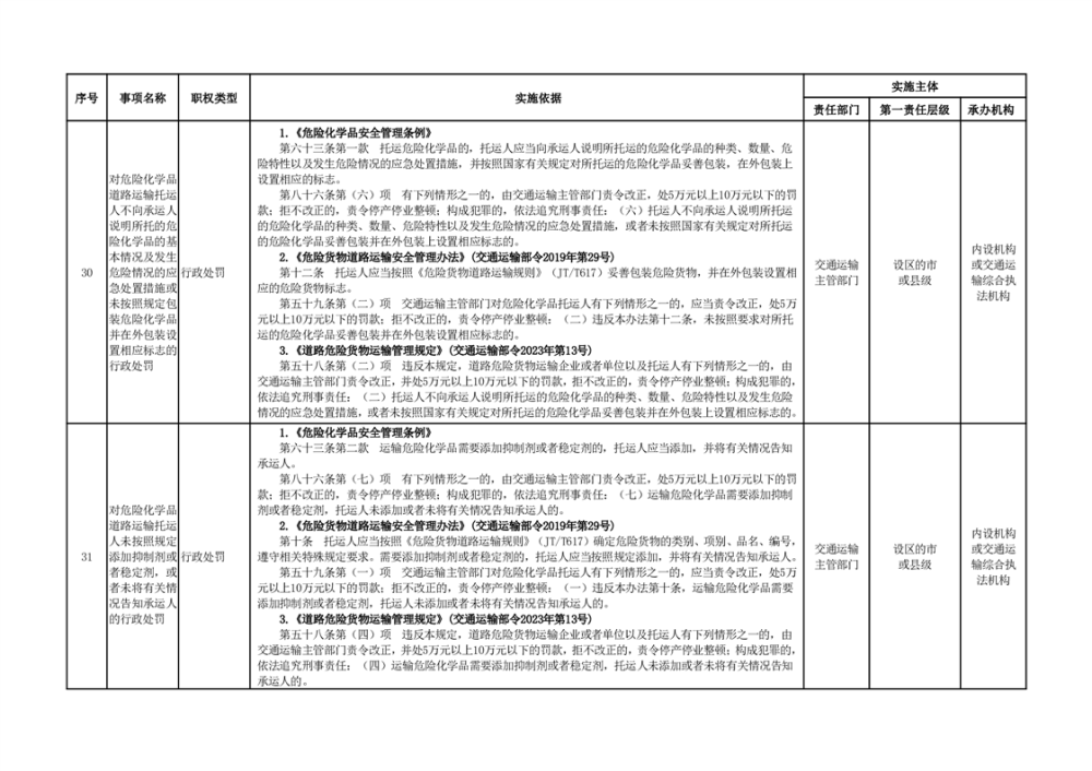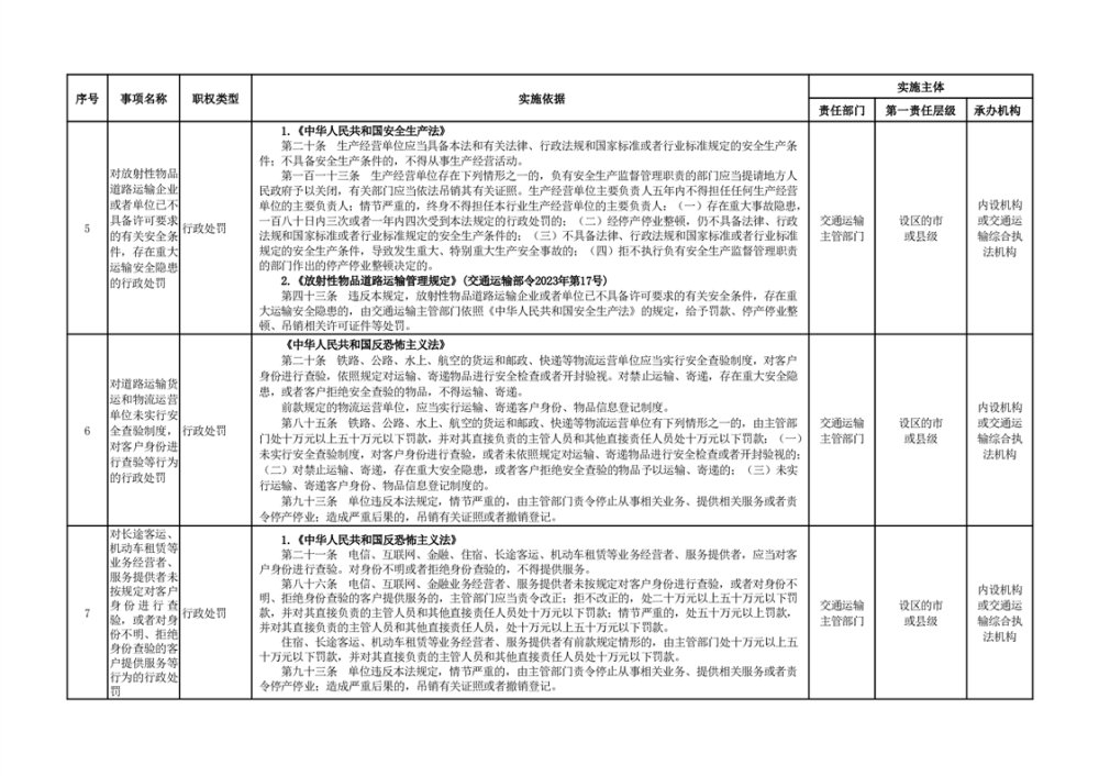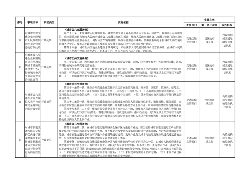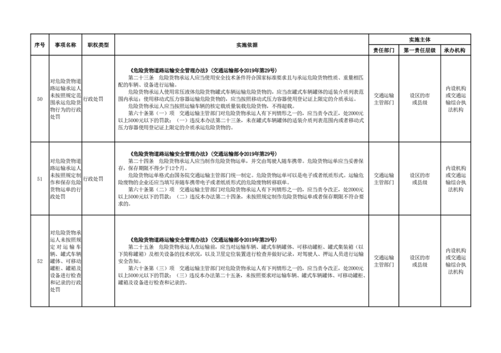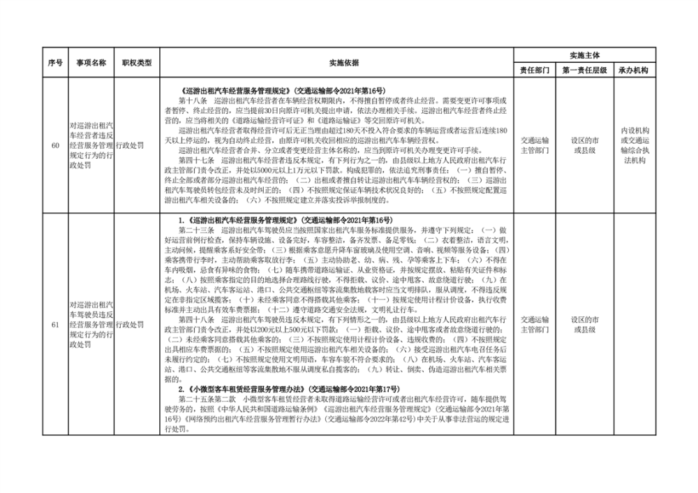 临湘市交通运输综合行政执法事项指导目录 道路运输管理85项