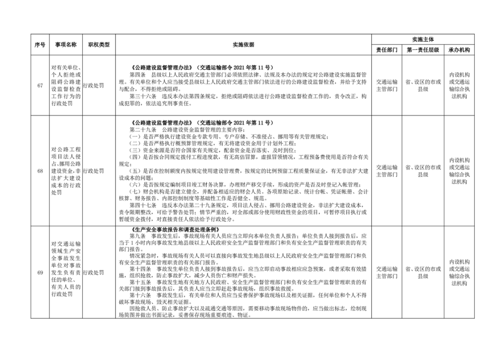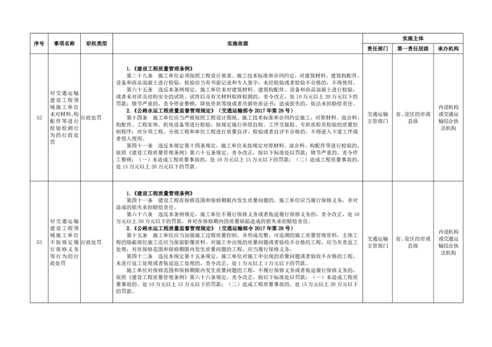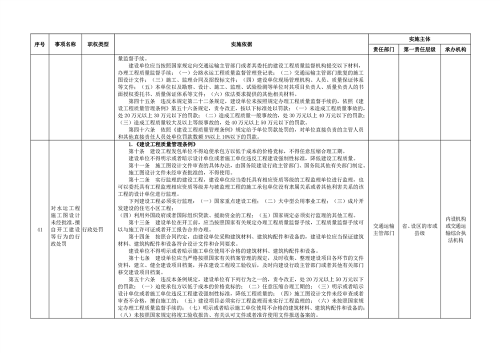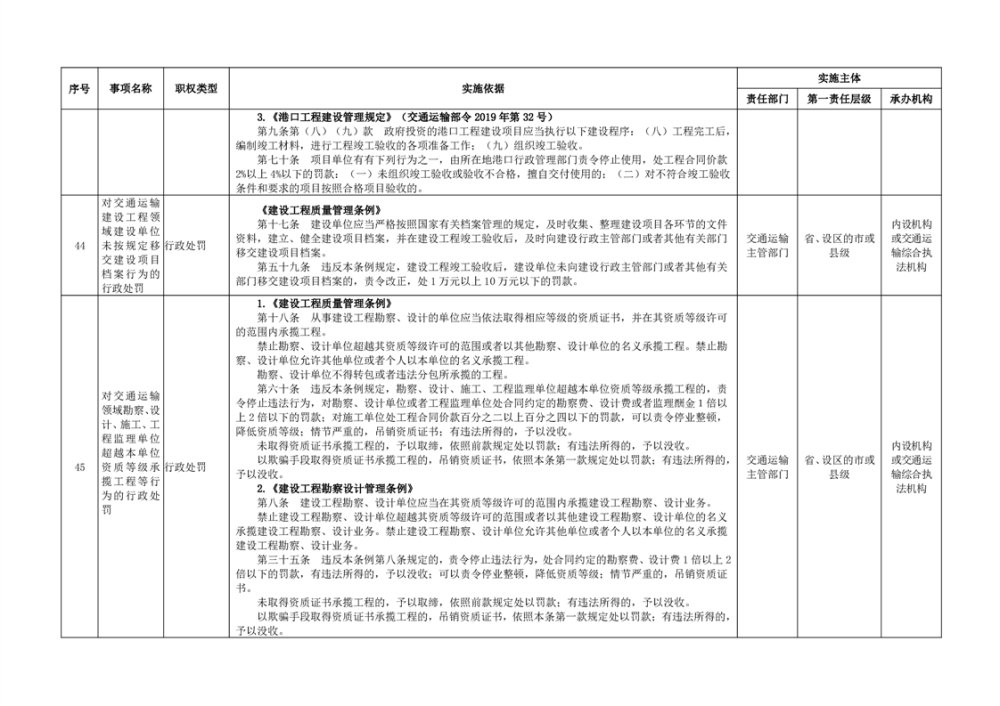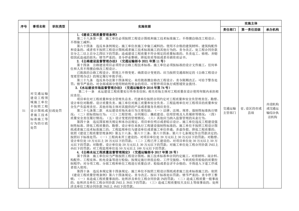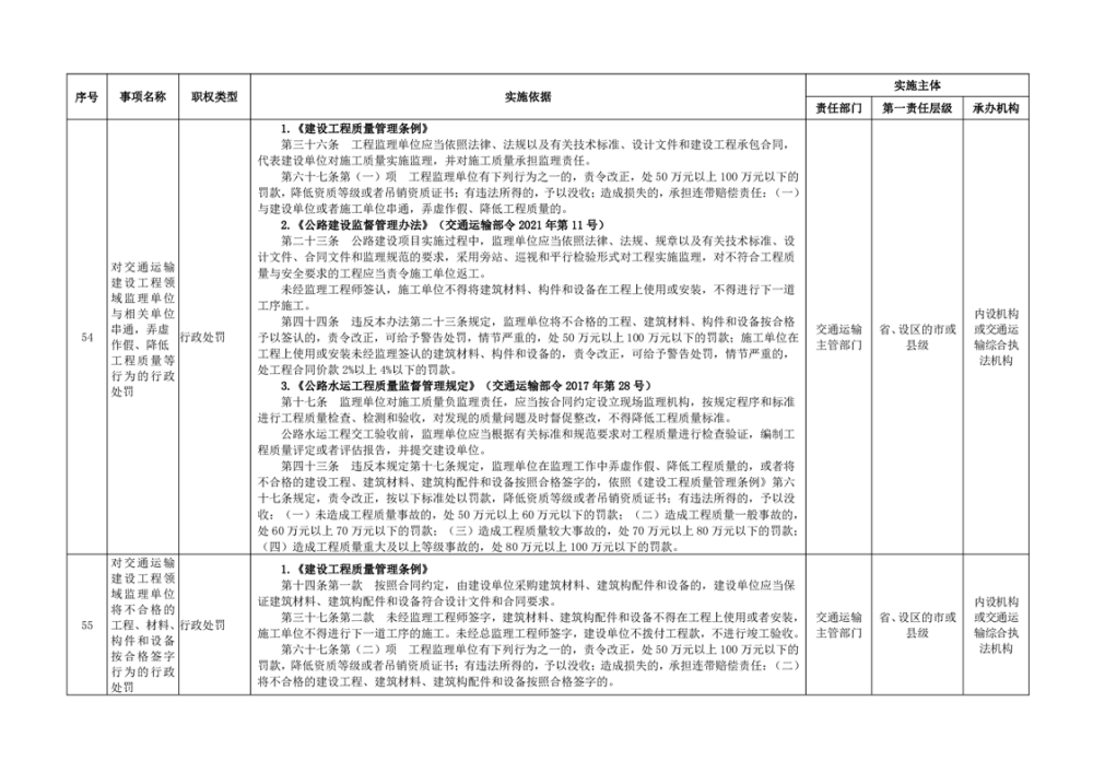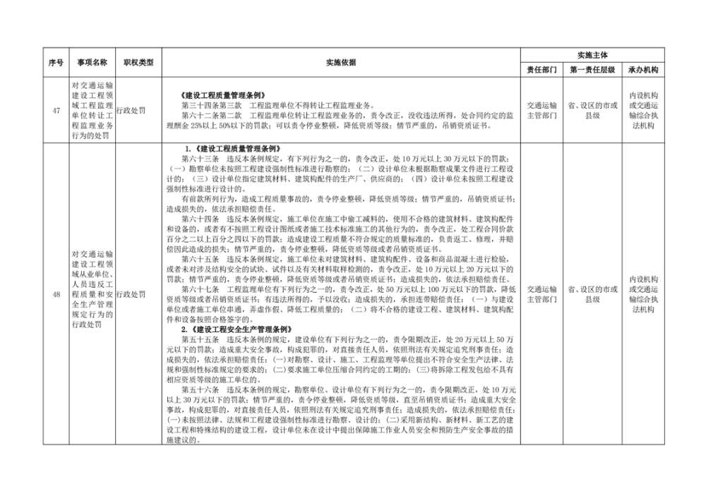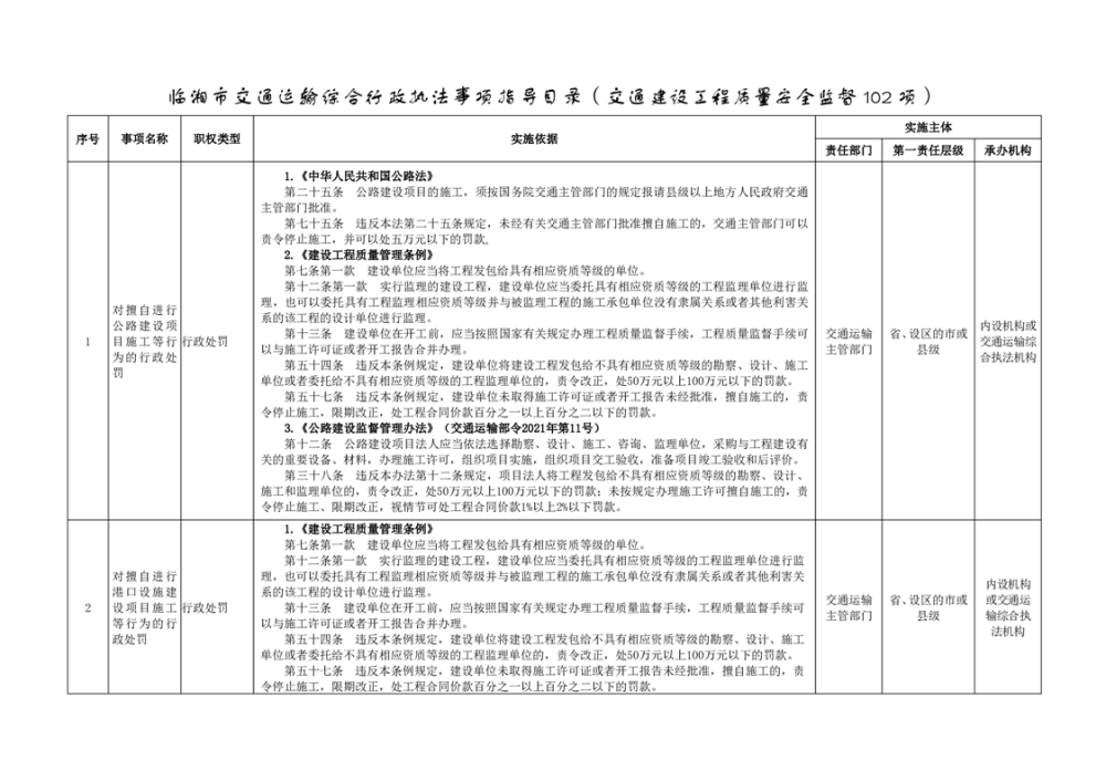 临湘市交通运输综合行政执法事项指导目录 交通建设工程质量安全监督102项