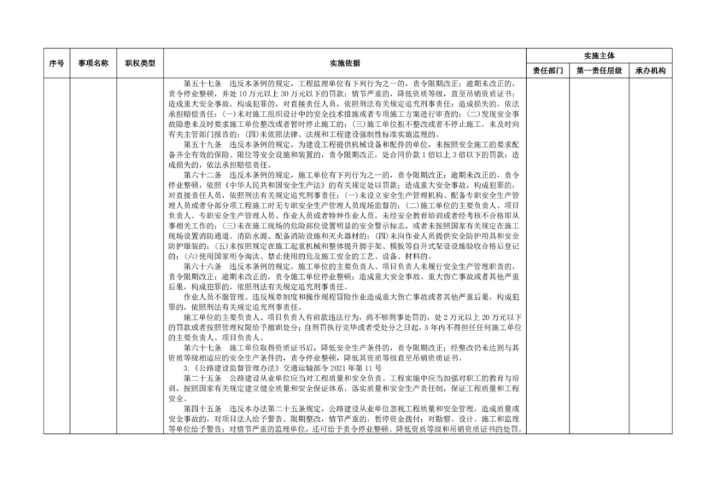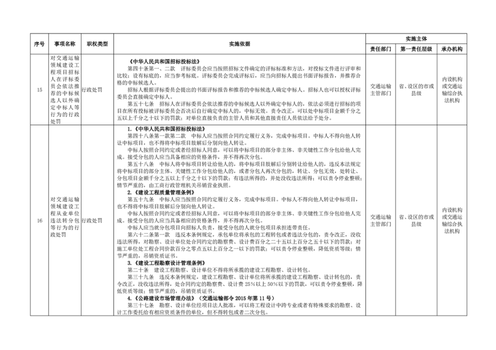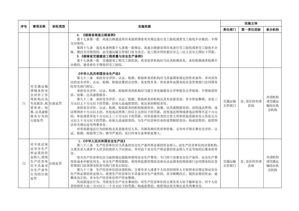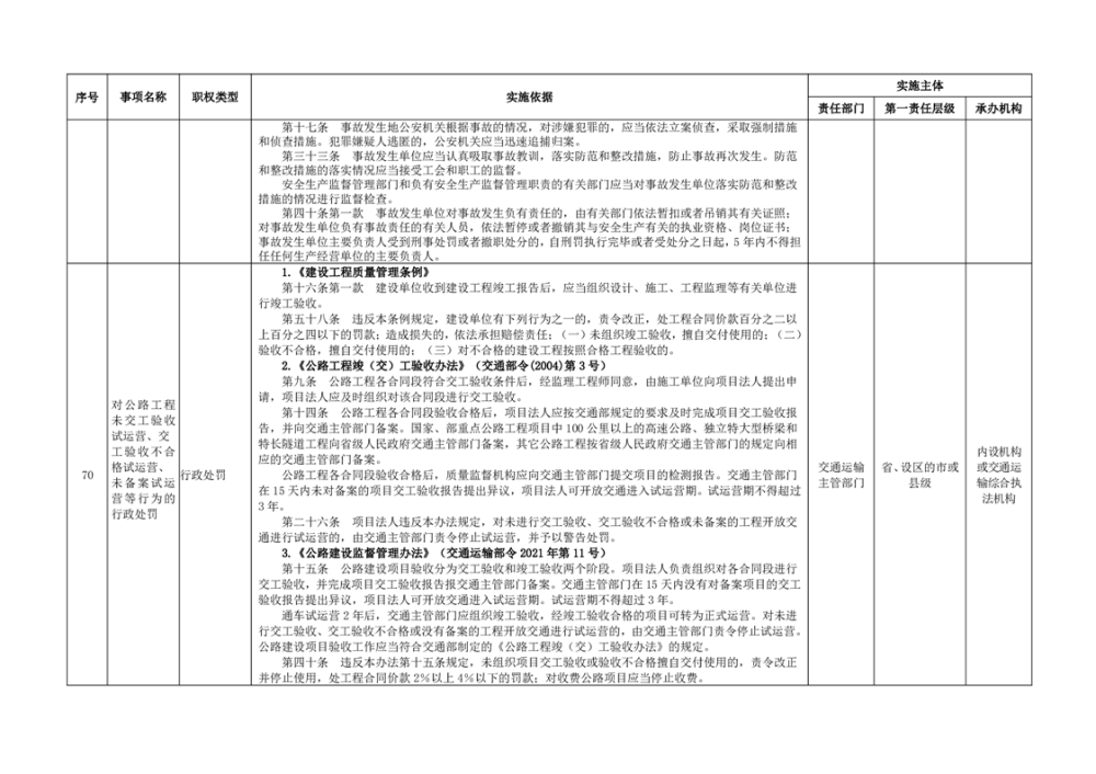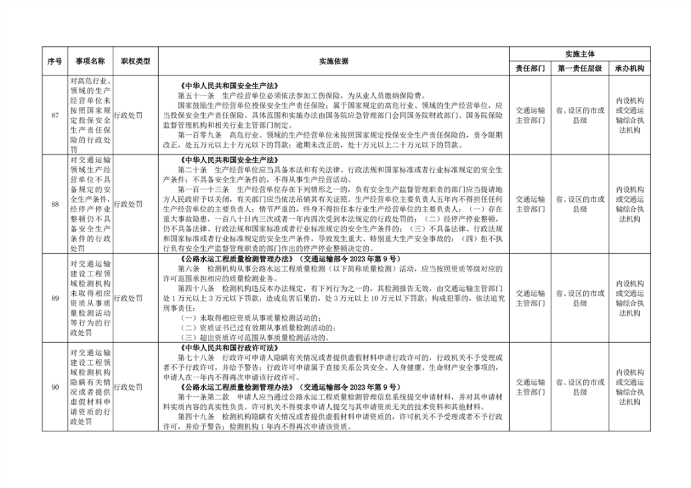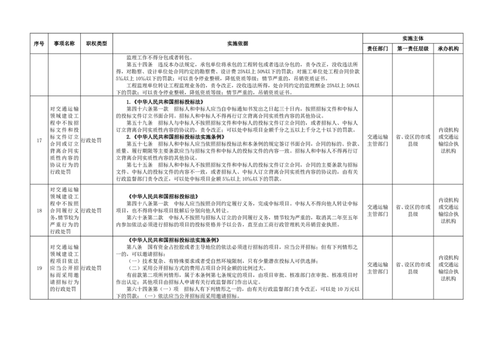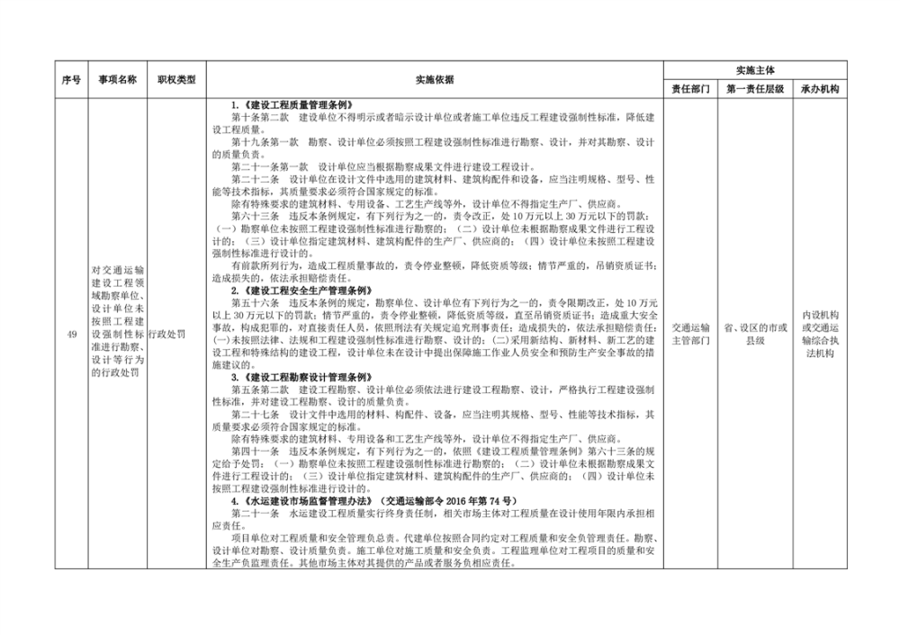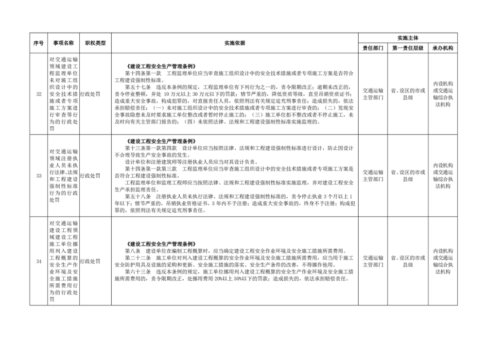 临湘市交通运输综合行政执法事项指导目录 交通建设工程质量安全监督102项