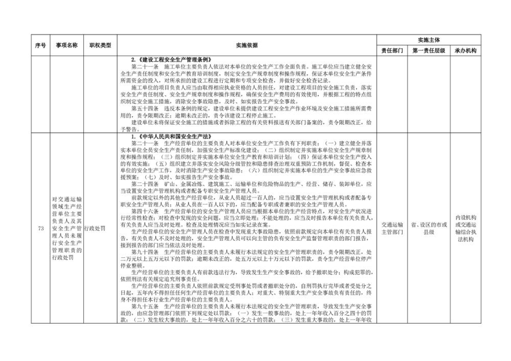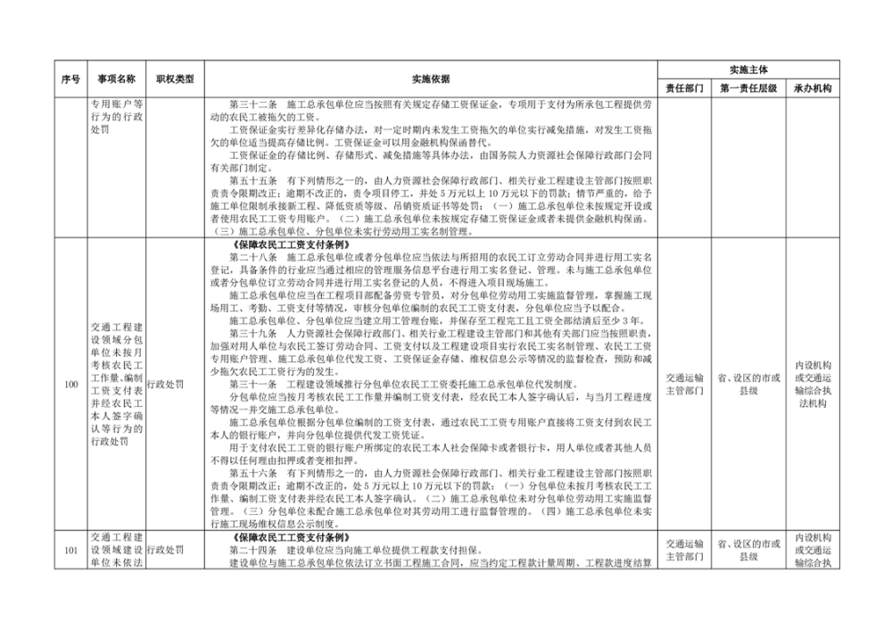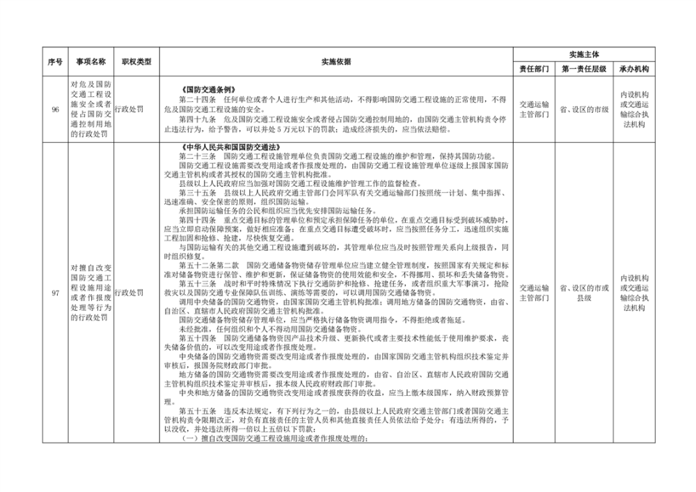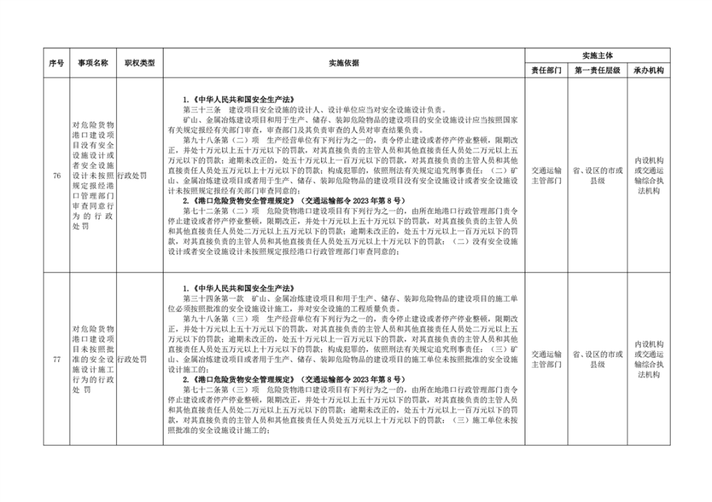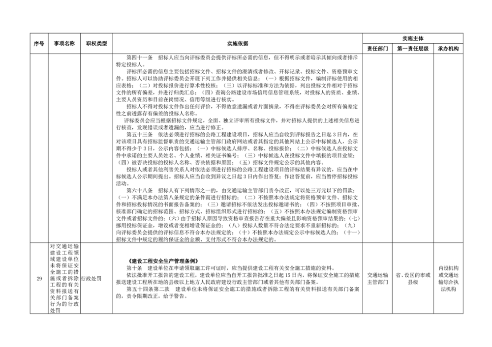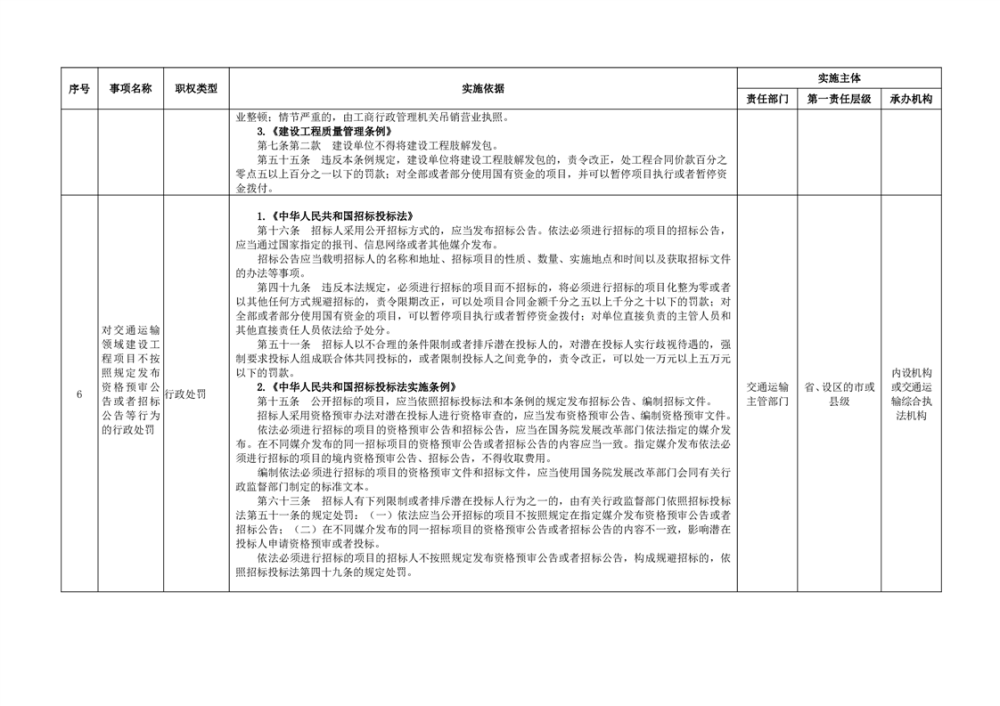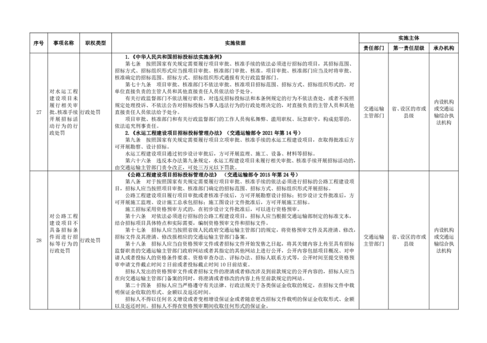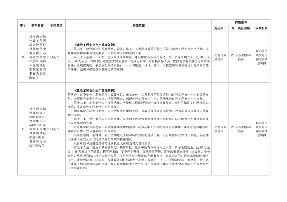 临湘市交通运输综合行政执法事项指导目录 交通建设工程质量安全监督102项