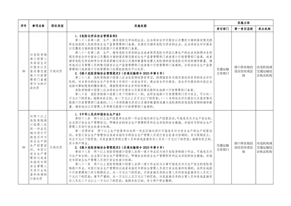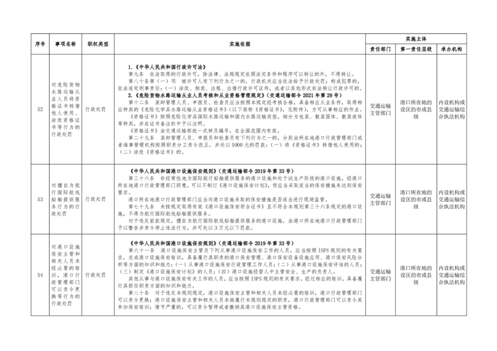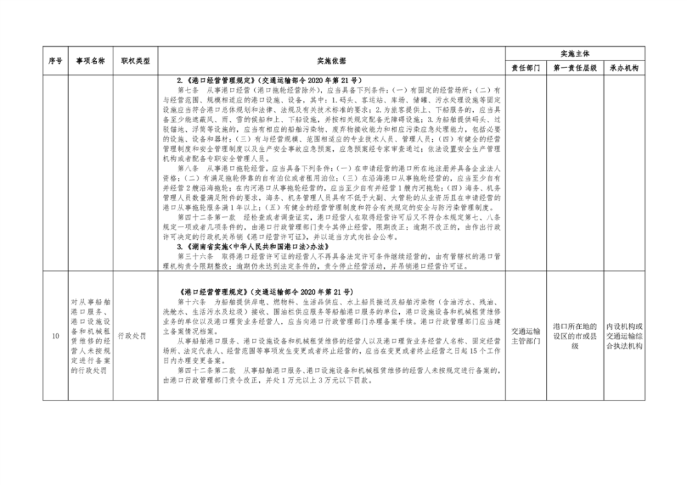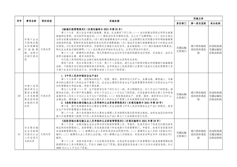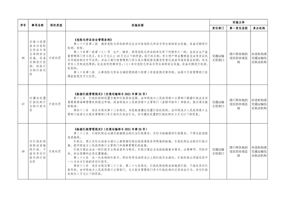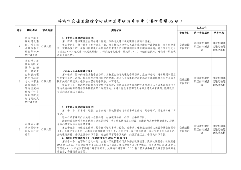 临湘市交通运输综合行政执法事项指导目录 港口管理62项