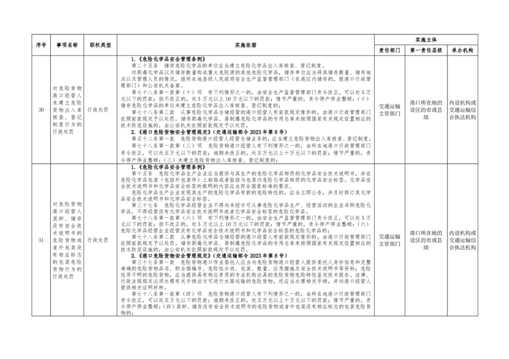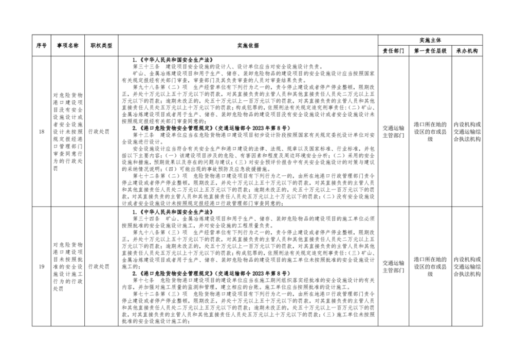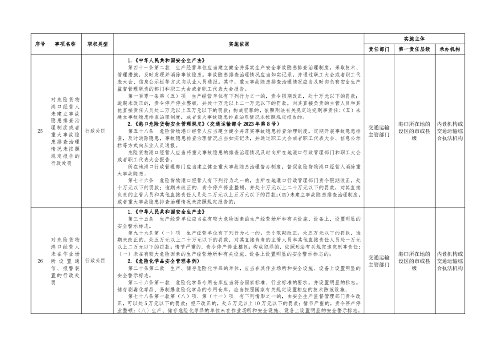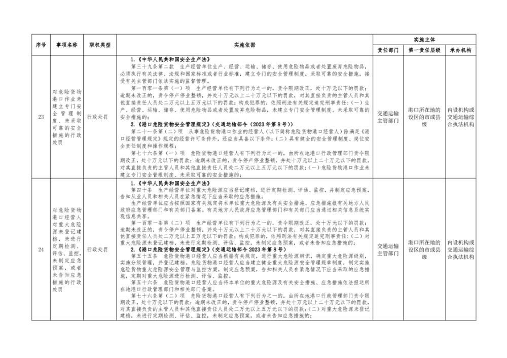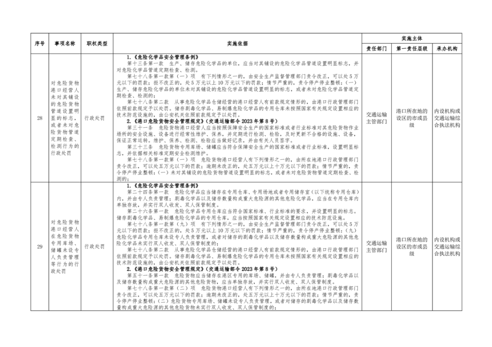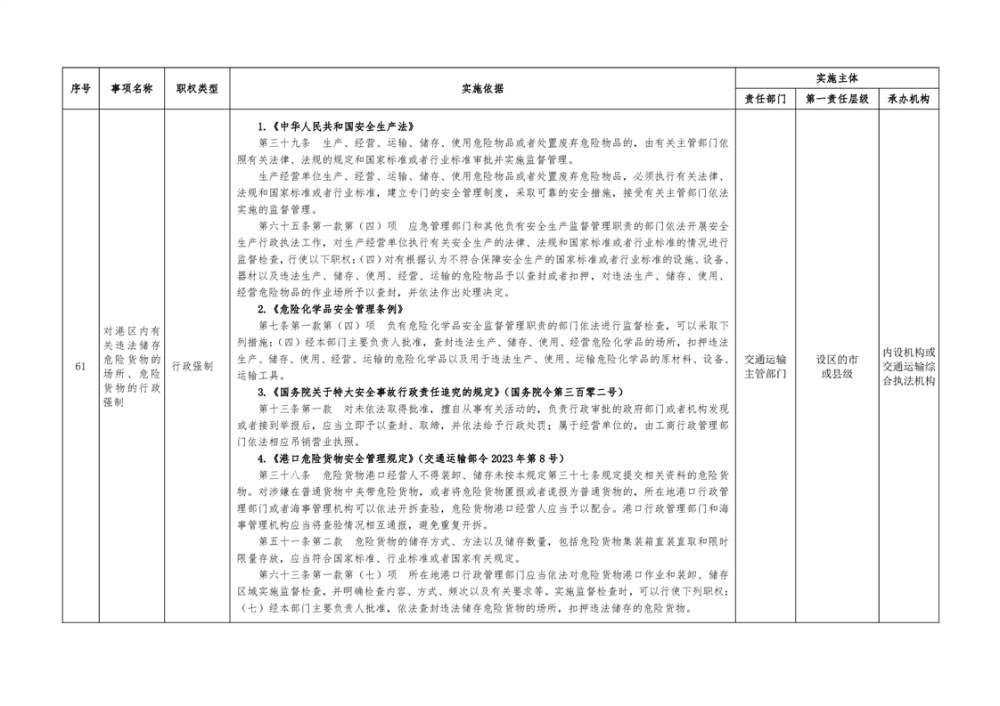 临湘市交通运输综合行政执法事项指导目录 港口管理62项