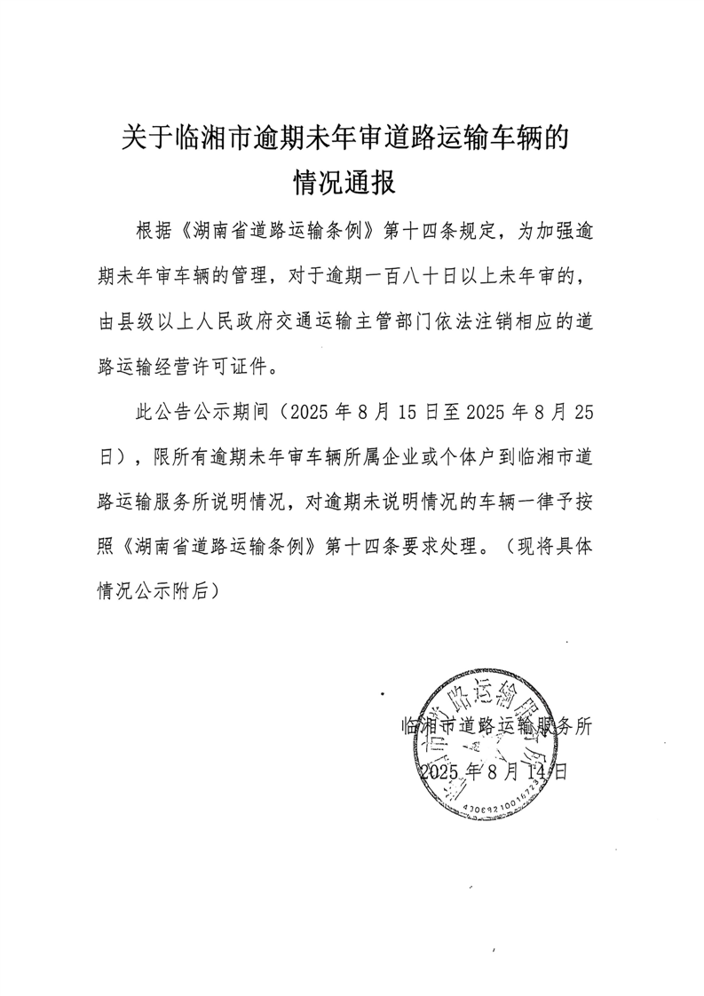 关于临湘市逾期未年审道路运输车辆的情况通报(11)