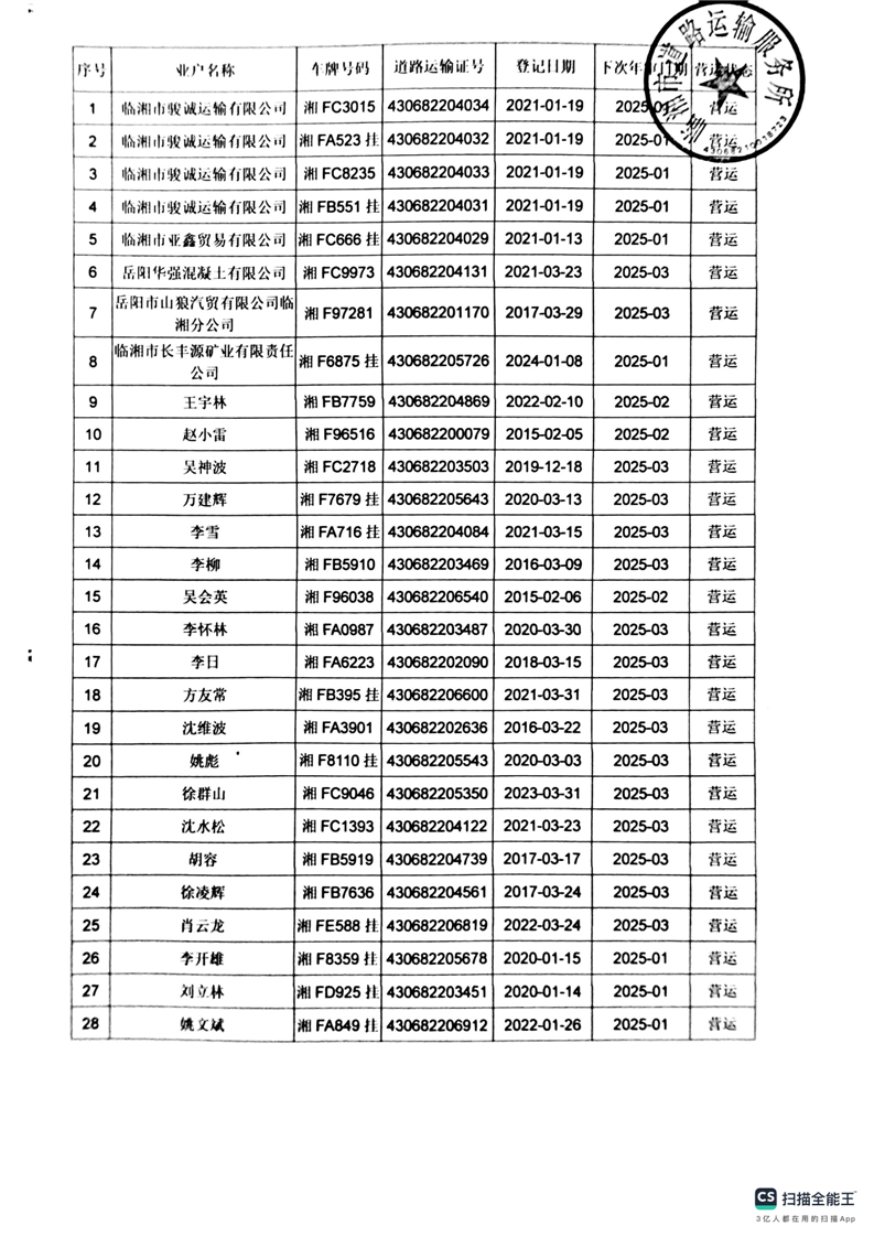 关于临湘市逾期未年审道路运输车辆的情况通报(10)