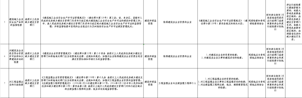 临湘市住建局涉企行政检查事项清单