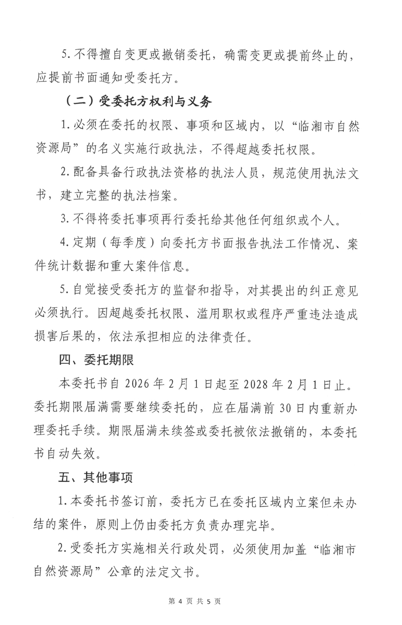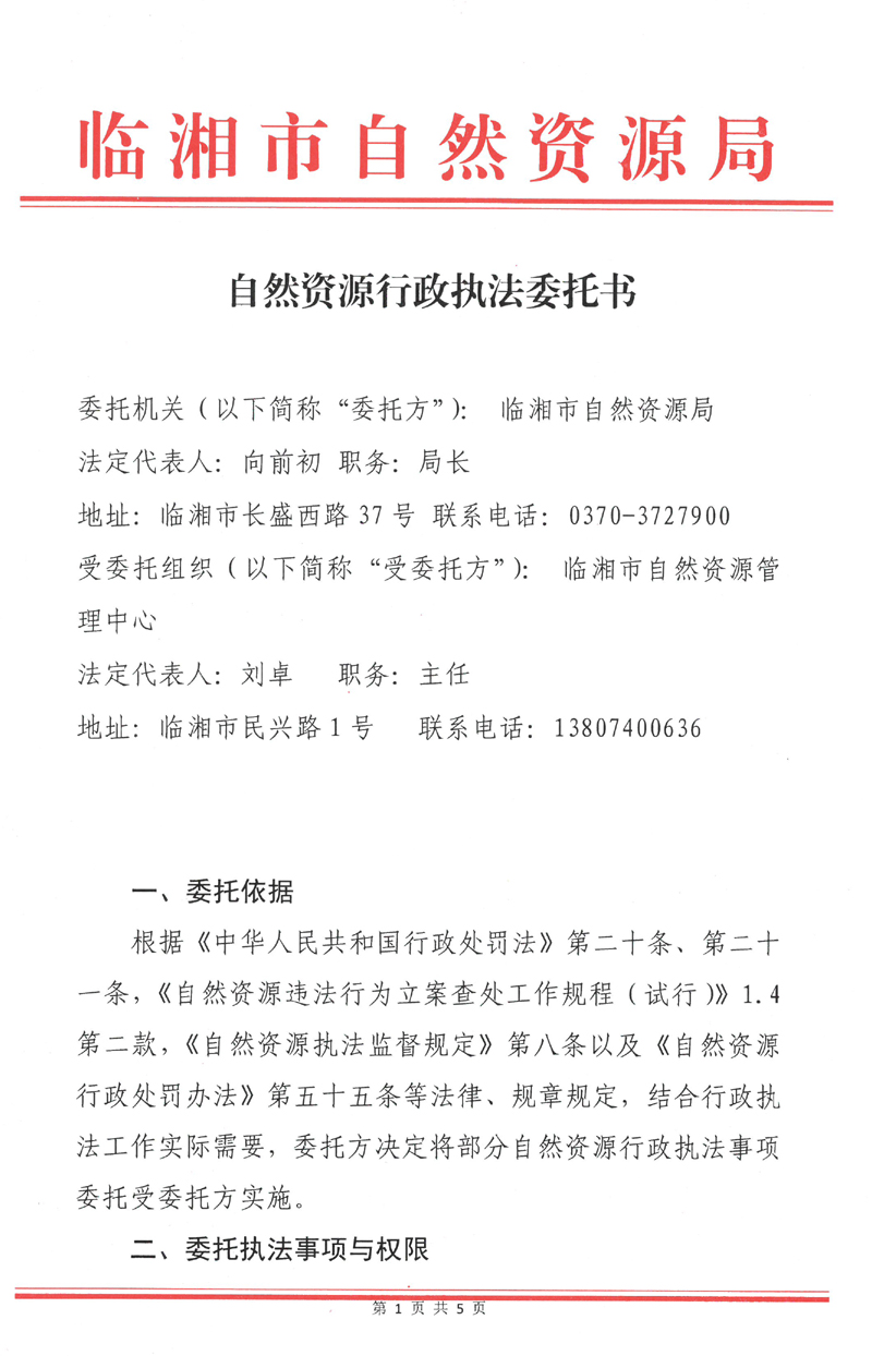 自然资源行政执法委托书(临湘市自然资源局委托临湘市自然资源管理中心)