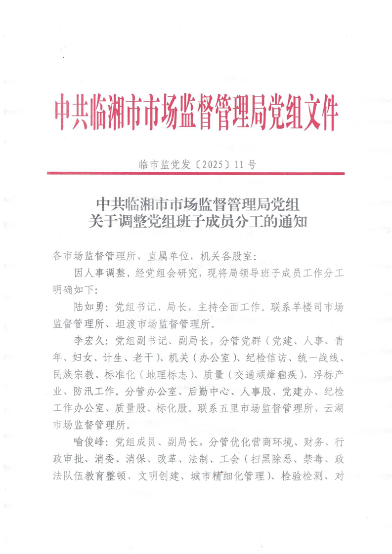 2025年党政班子成员分工