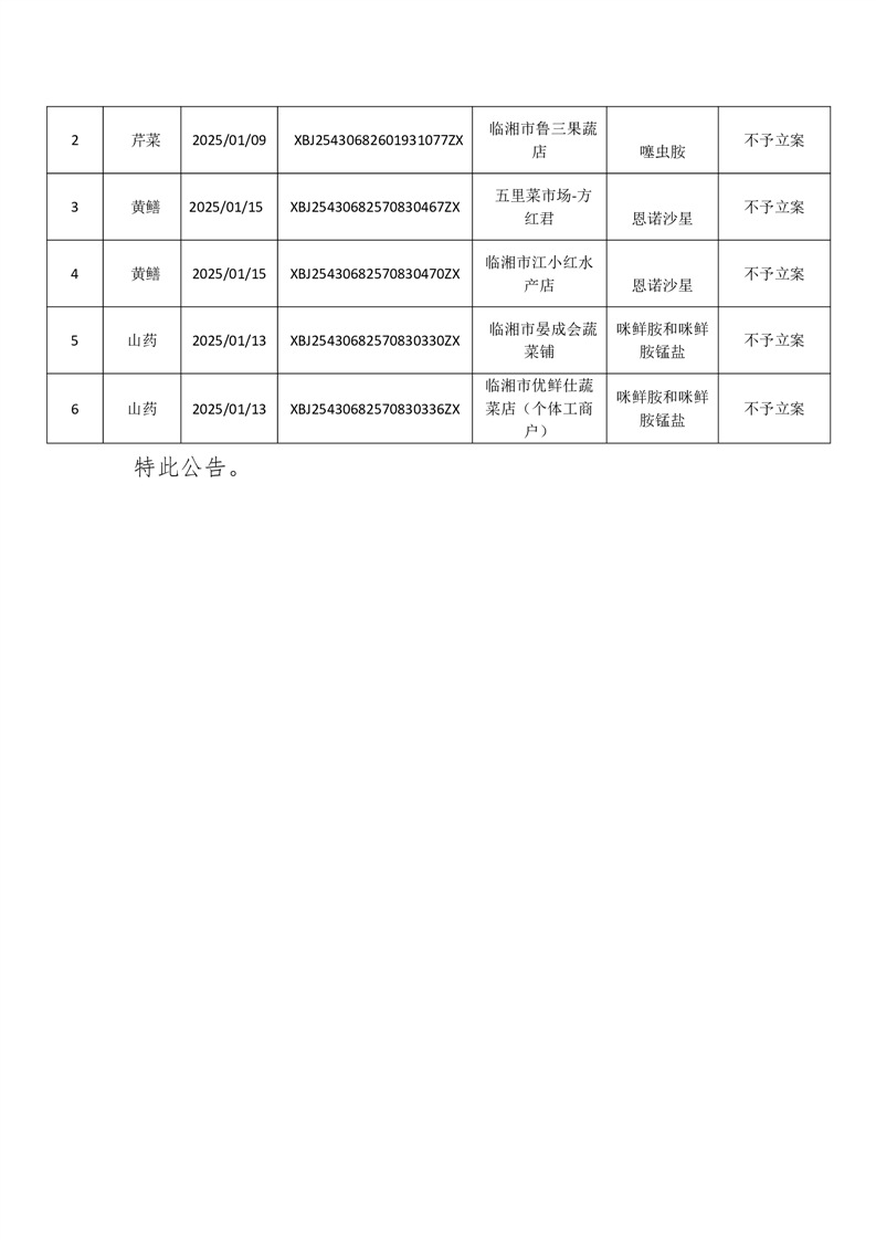 临湘市市场监督管理局 2025年核查处置阶段性公示4月