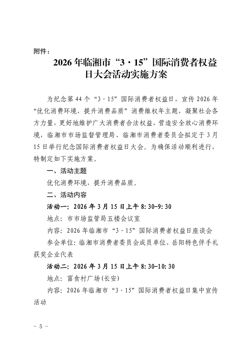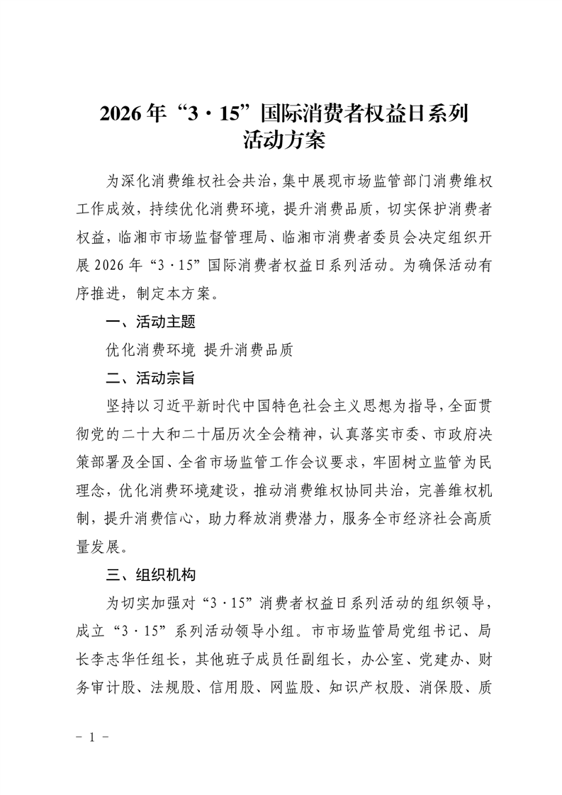 关于印发《2026年“3.15”国际消费者权益日系列活动方案》的通知