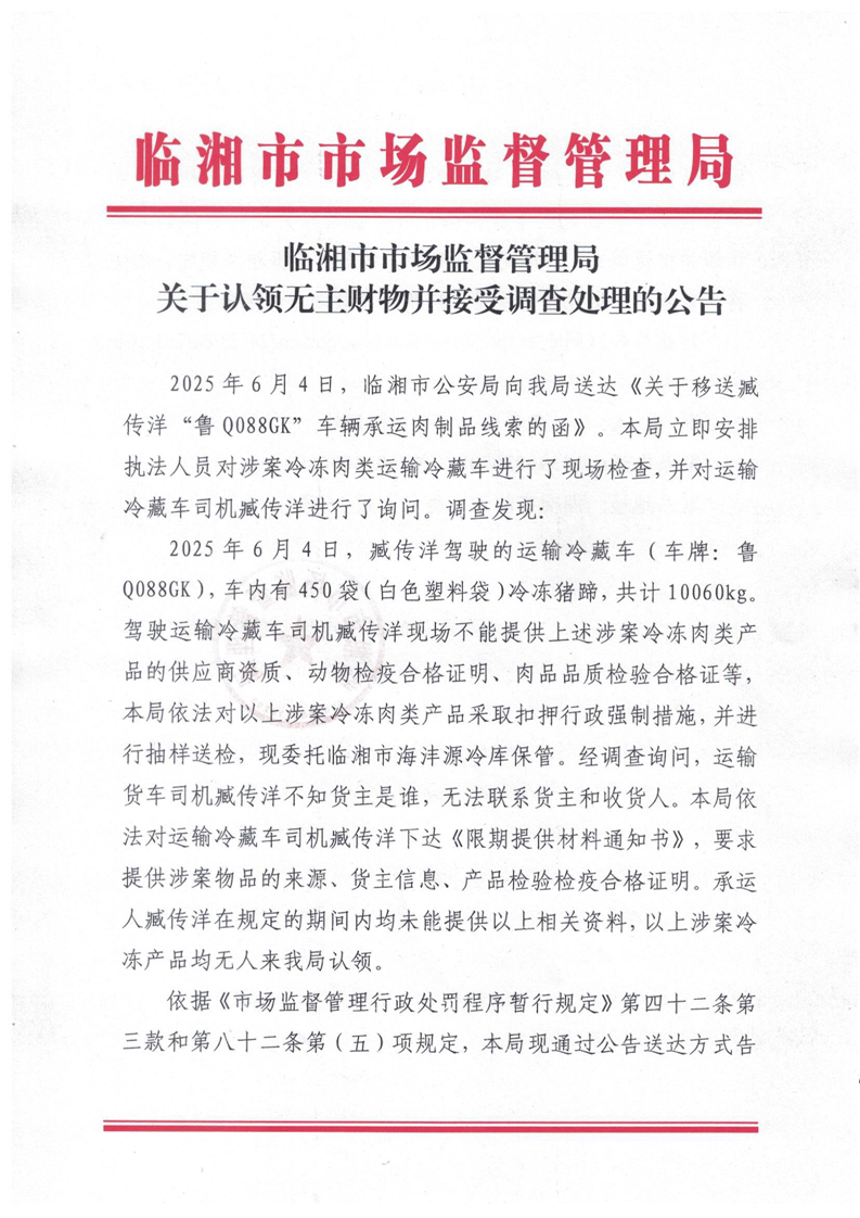 临湘市市场监督管理局关于认领无主财物并接受调查处理的公告1