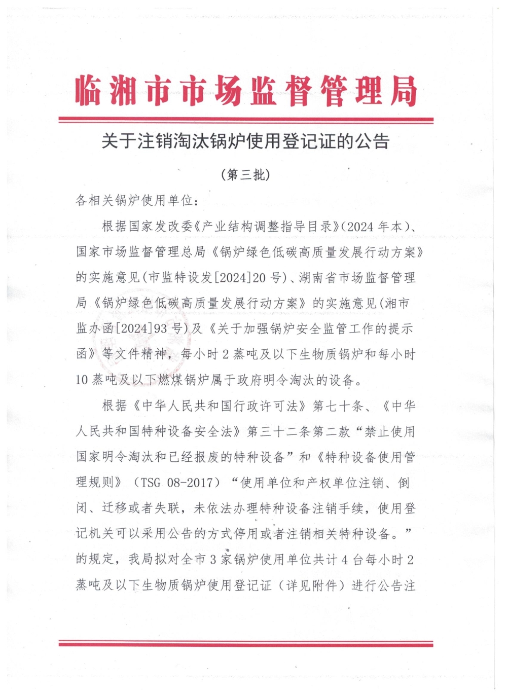 关于注销淘汰锅炉使用登记证的公告(第三批)