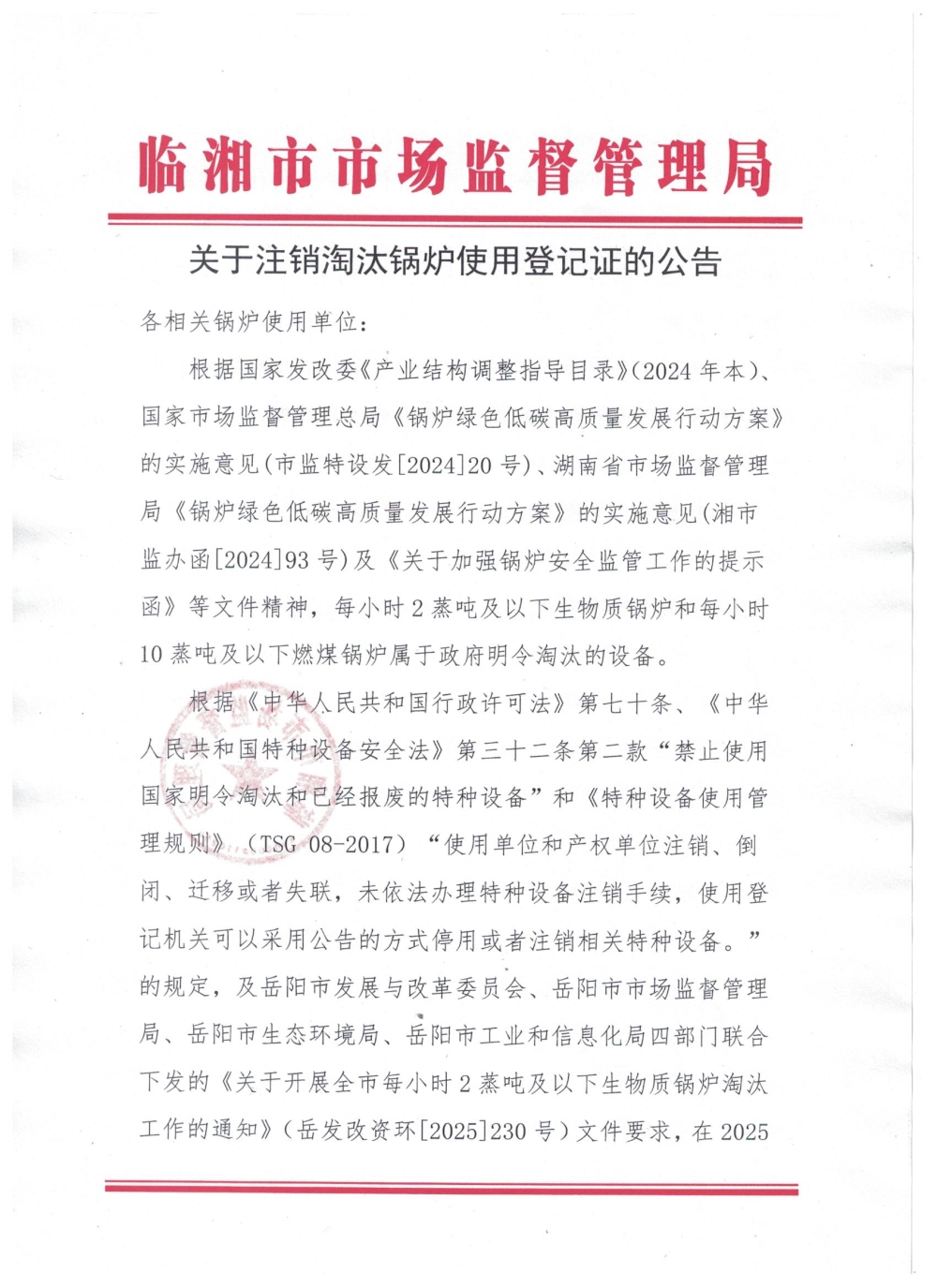 关于注销淘汰锅炉使用登记证的公告(第四批)