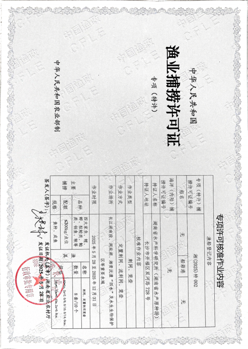 附件∶专项(特许)捕捞证—湘(2025)特002号