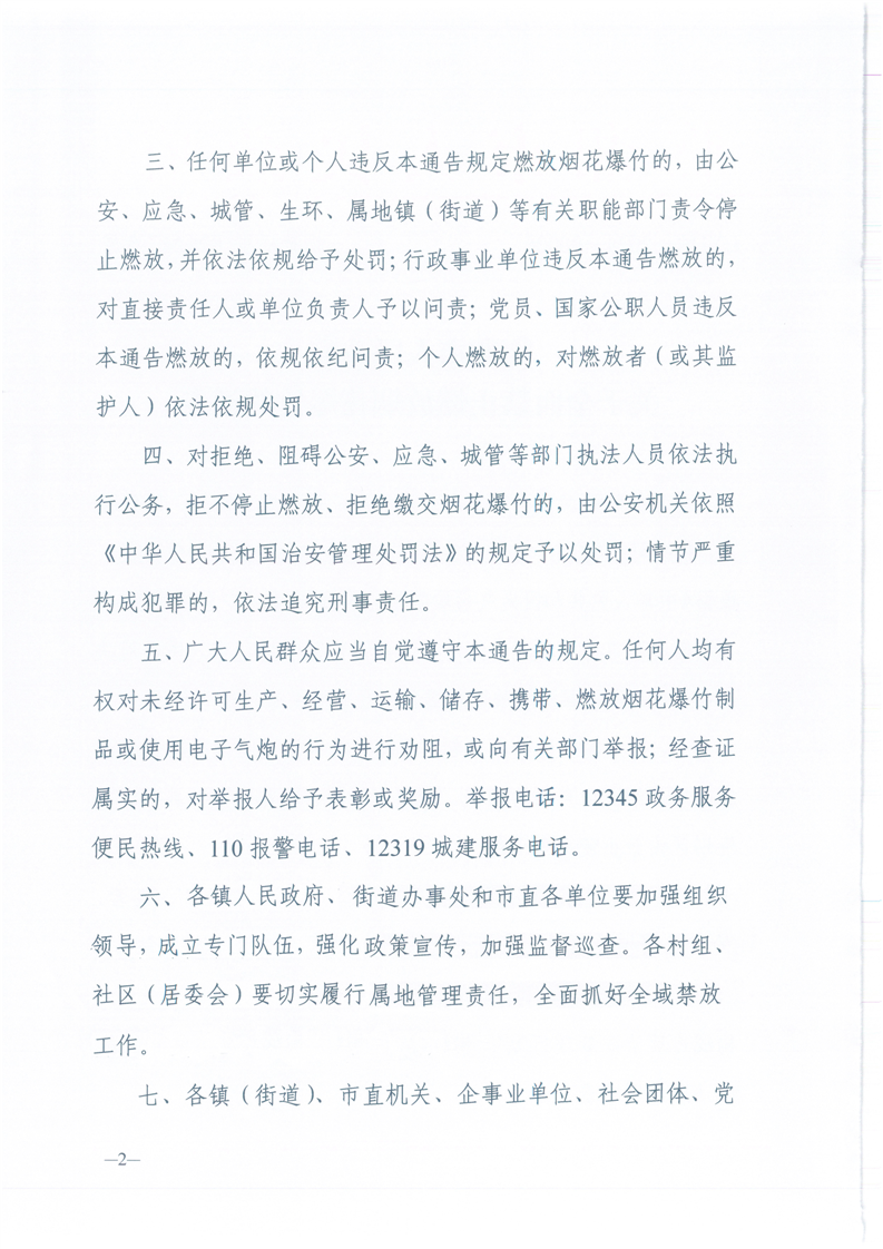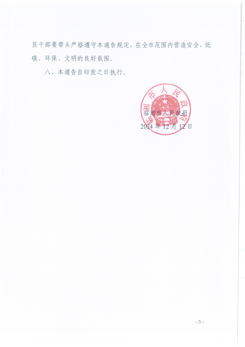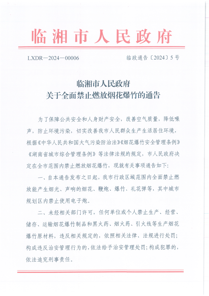 临湘市人民政府《关于全面禁止燃放烟花爆竹的通告》